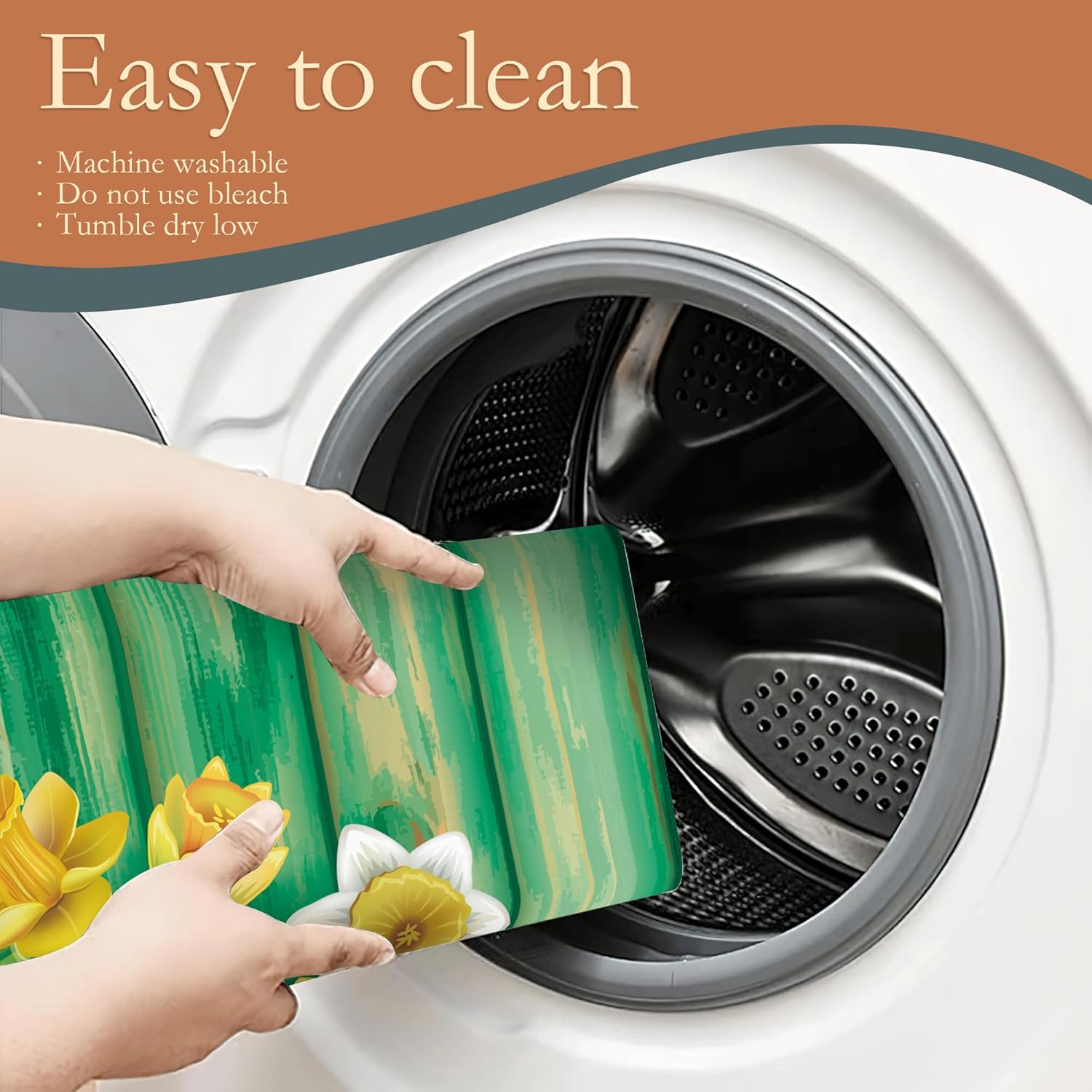 Yellow Daffodils Flowers Dish Drying Rack Mats Decor, Dish Pad Drying Mat Kitchen Counter 18x24 Inch Absorbent Reversible Microfiber for Coffee Bar Sink Countertop