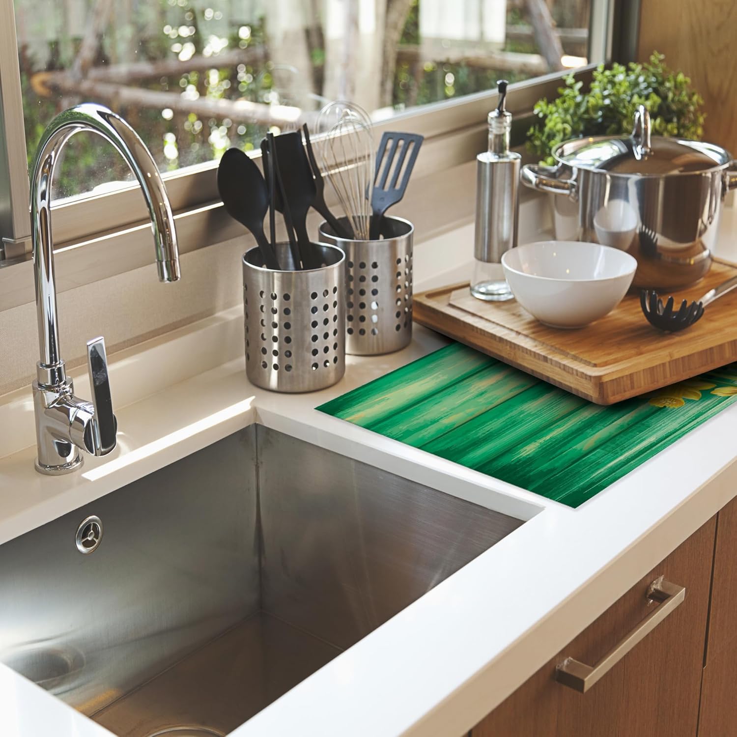 - QUICK DRY: Microfiber terry cloth on the other side absorbs 4X its weight in water, easily keep your counter dry. Our drying mat will suck up all the leftover wetness from your pots, pans, and dishes, and leave the underside both dry. Use alone or pair with a dish drying rack.Offered in rich color options these drying mats are the perfect functional addition to your kitchen decor.