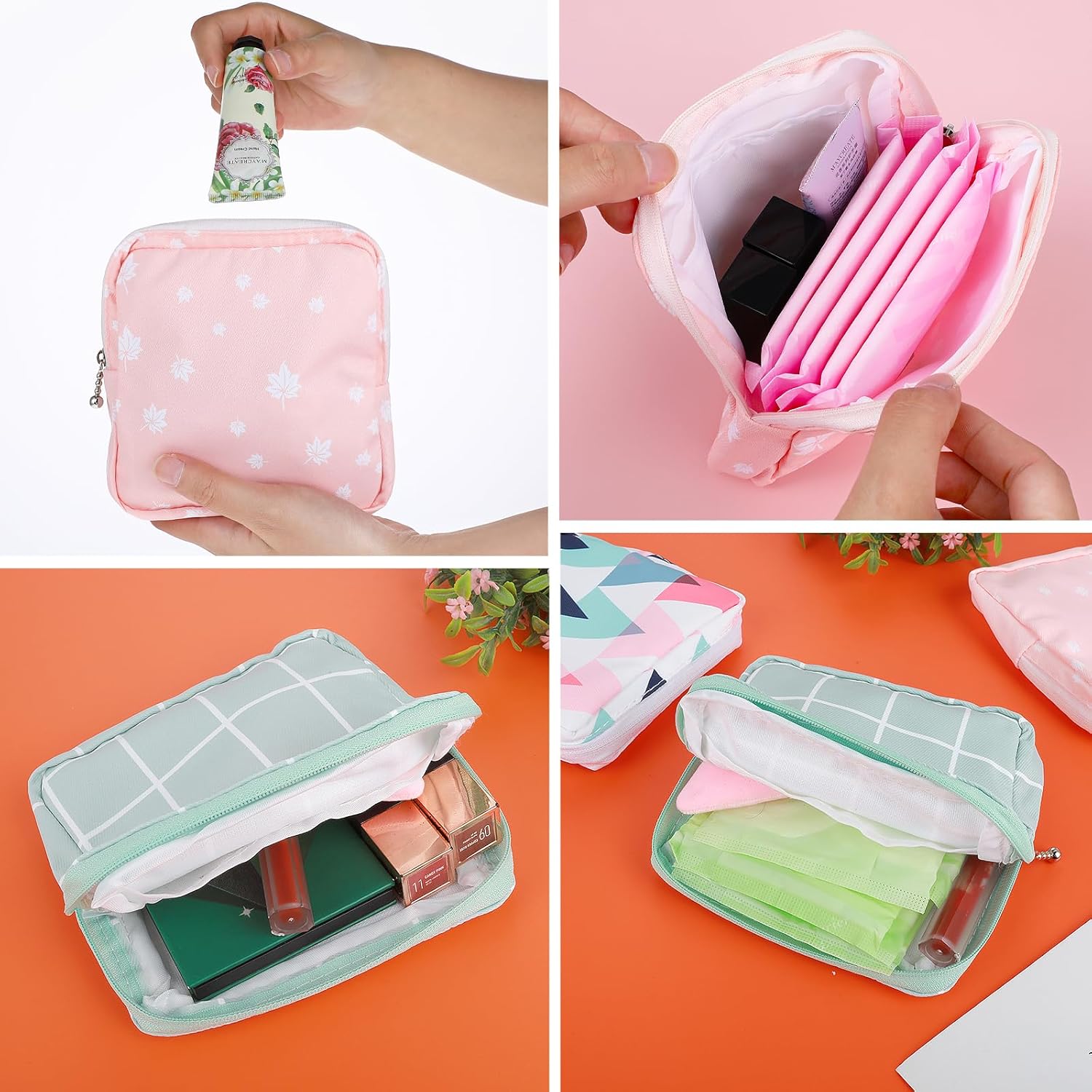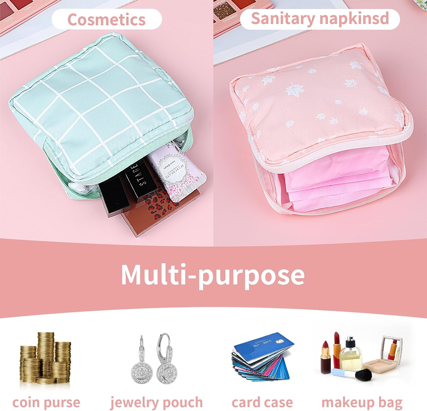 - 【Convenient to carry】The size of this bag is 13x13x2.5cm/5.11x5.11x1in.Easy to carry and clean with water, Super lightweight, low-maintenance material. Each menstrual pad bag can hold 6-10 sanitary napkins at the same time, large capacity, can easily fit in your bag or hold, perfect for girls and women who like to travel and outdoors, keep everything clean and tidy, and well organized.