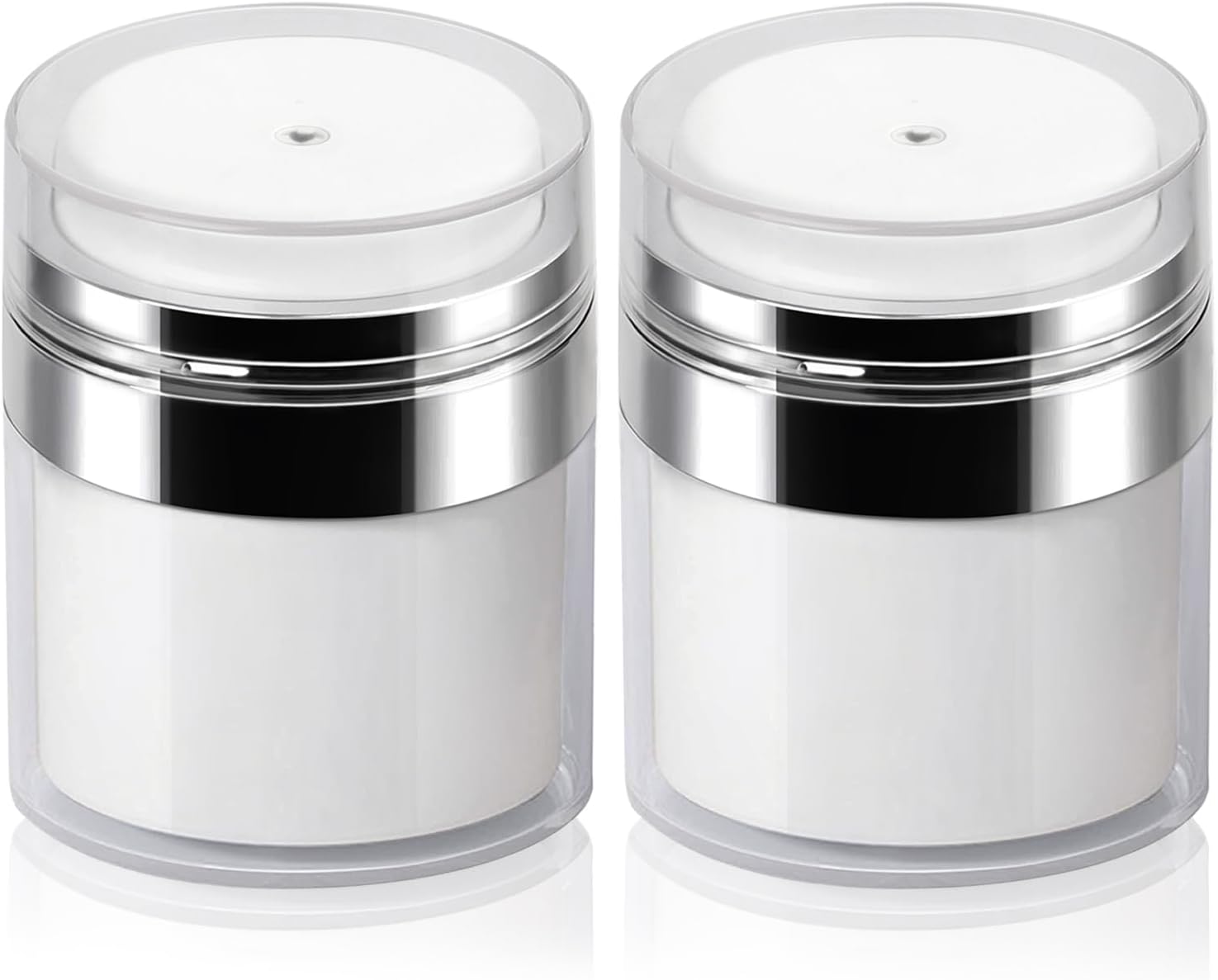 2Pack 15ml Airless Pump Jar - 0.5 Oz Moisturizer Pump Dispenser, Travel Lotion Container Vacuum Bottle for Skincare, Thick Moisturizer