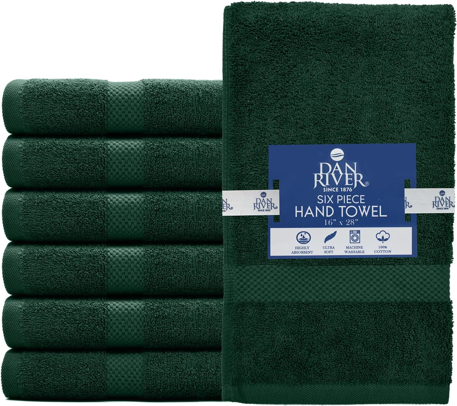 DAN RIVER 6-Pack Premium Hand Towels (16x28 Inches) - 100% Cotton, Ultra Soft, Lightweight, Highly Absorbent Towels for Bathroom, Spa, Gym, Salon, Hotel, and Travel - 550 GSM, Hunter Green