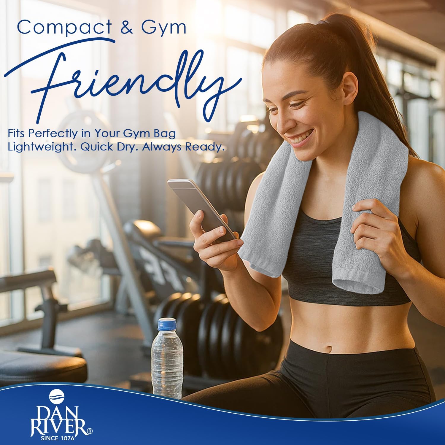 DAN RIVER 6-Pack Premium Hand Towels (16x28 Inches) - 100% Cotton, Ultra Soft, Lightweight, Highly Absorbent Towels for Bathroom, Spa, Gym, Salon, Hotel, and Travel - 550 GSM - Silver