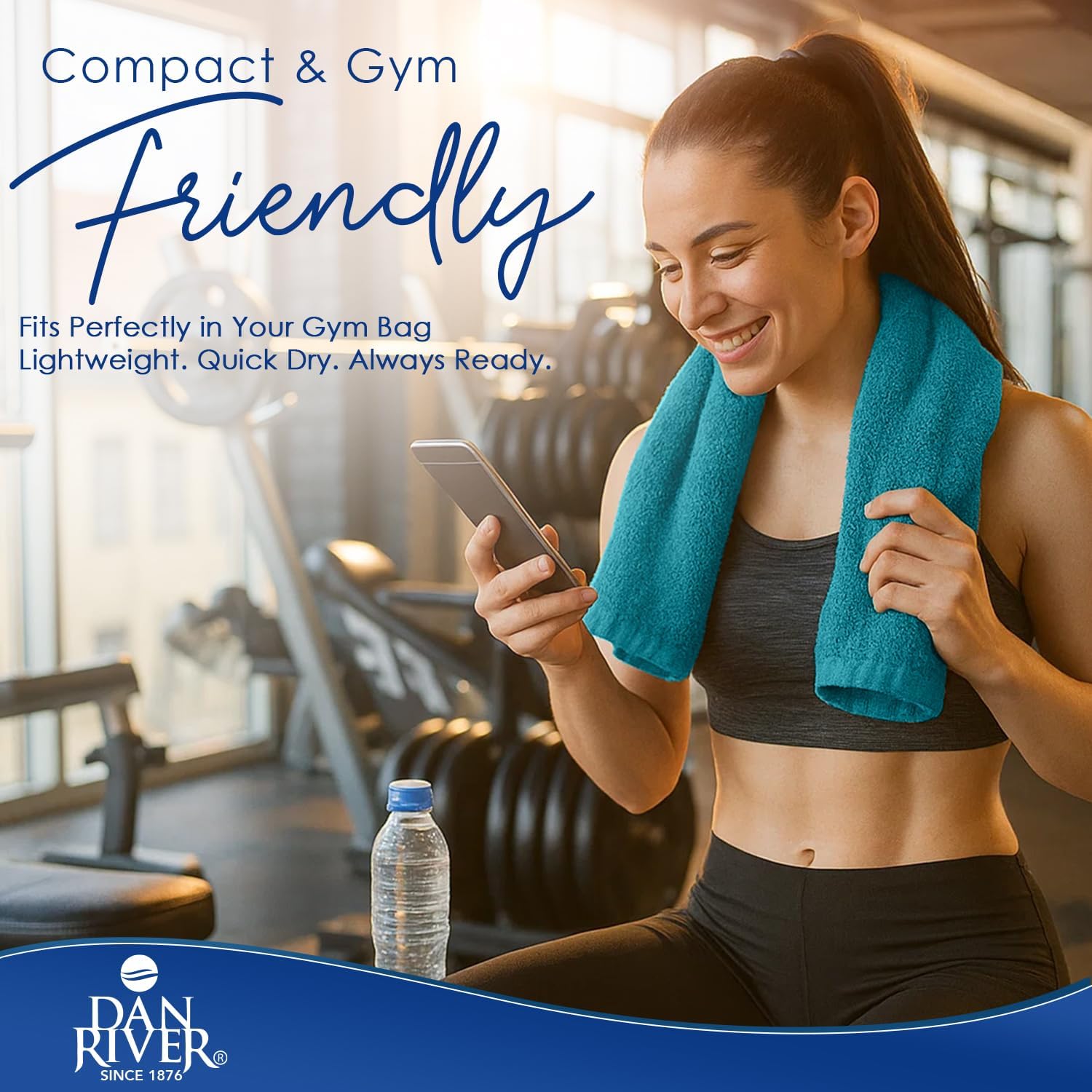 DAN RIVER 6-Pack Premium Hand Towels (16x28 Inches) - 100% Cotton, Ultra Soft, Lightweight, Highly Absorbent Towels for Bathroom, Spa, Gym, Salon, Hotel, and Travel - 550 GSM - Teal
