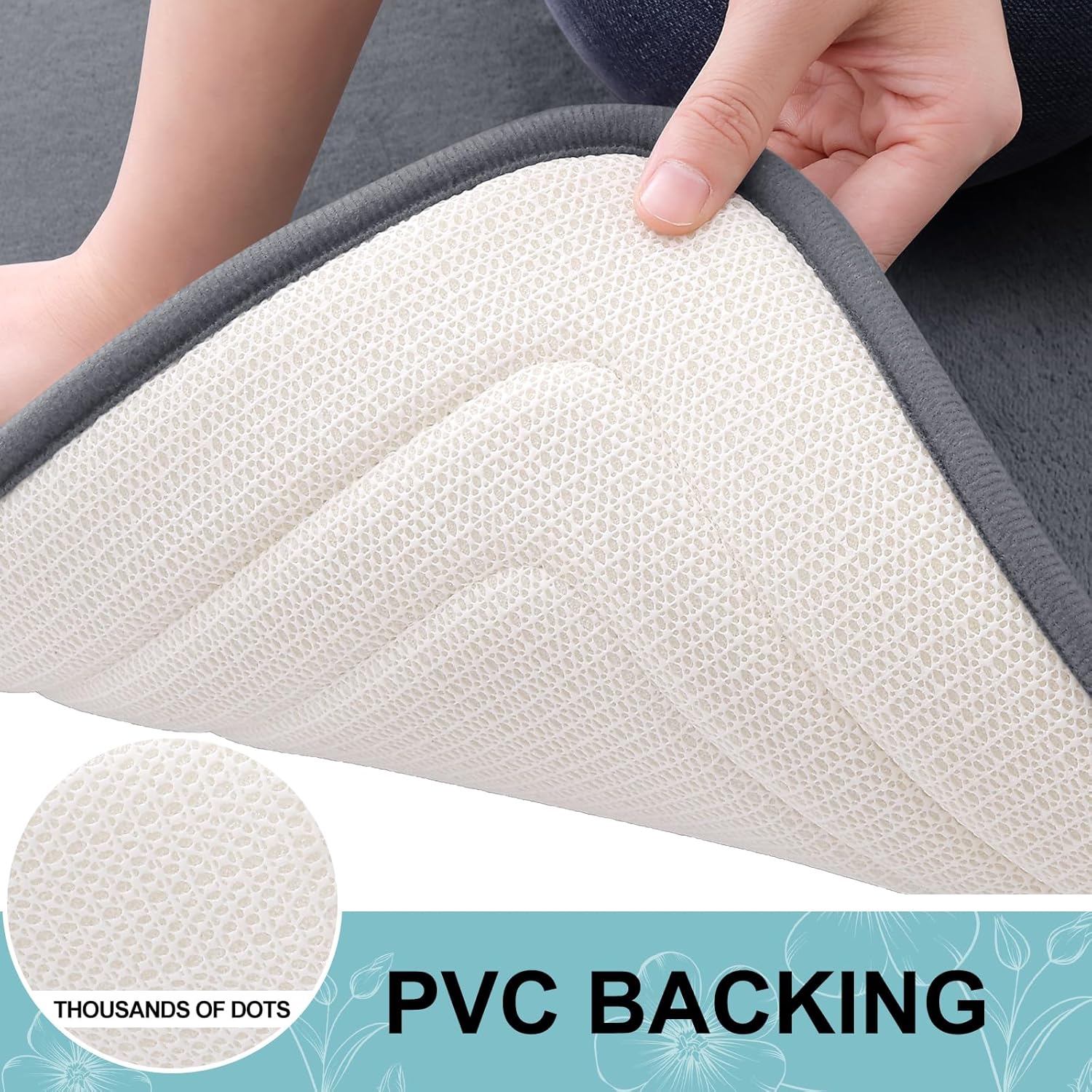 - [STABLE FOOTING] Our bathroom mat is equipped with a robust and enduring PVC backing, preventing shifting and skidding. Unlike mats with rubber backing that may wear off after washing, our bath mat ensures lasting durability. For a secure footing, keep the floor beneath the rug dry and avoid placing it on wet surfaces.