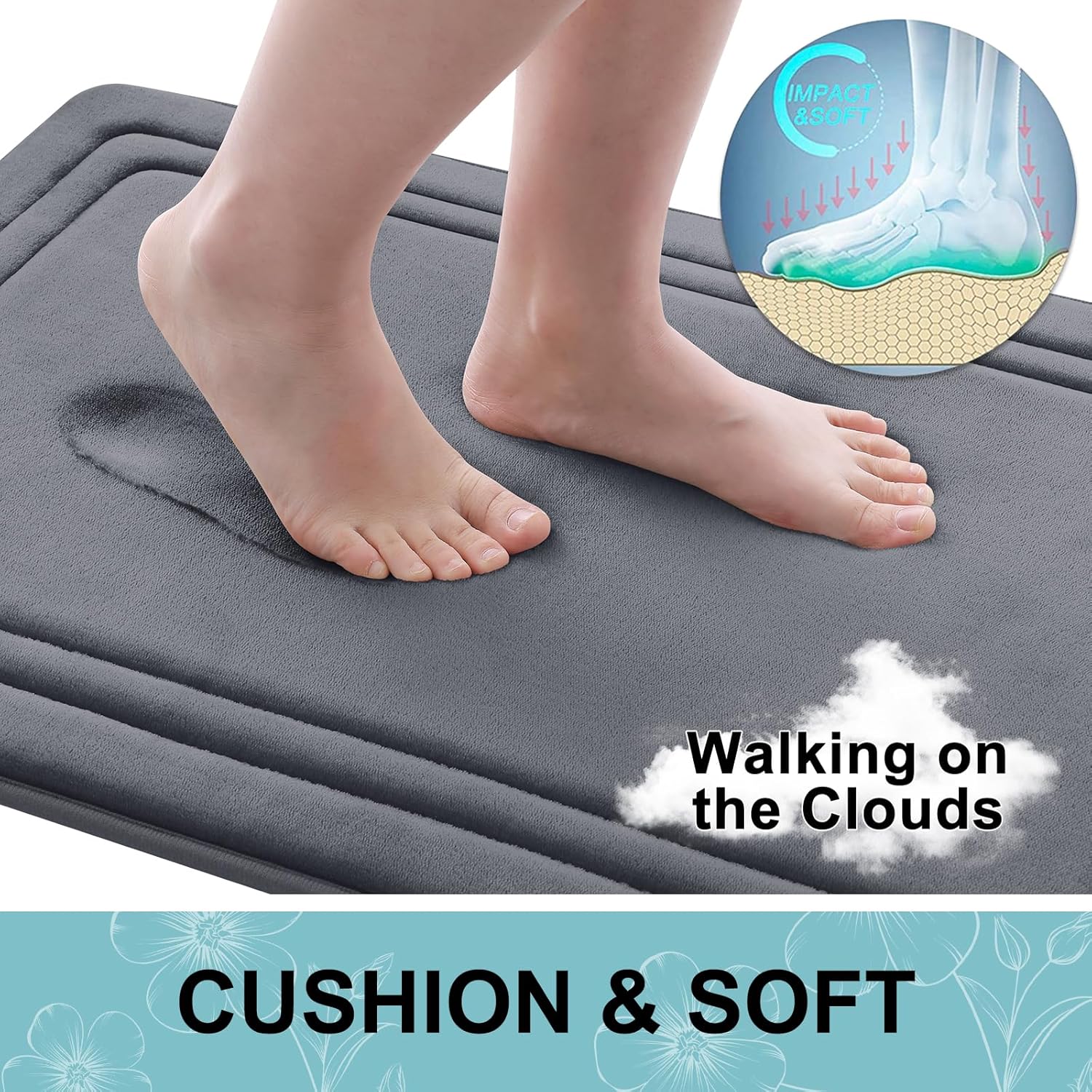 - [CLOUD-LIKE COMFORT] Imagine stepping onto a Grandaily memory foam bath mat and feeling the heavenly softness of microfiber flannel velvet cradling your feet. The thick memory foam provides gentle support, making it feel like you're standing on clouds.