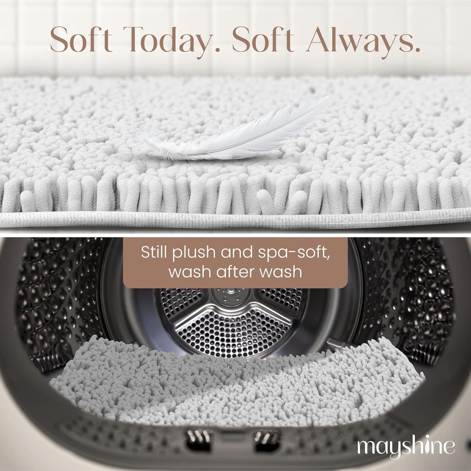 MAYSHINE Plush Shaggy Chenille Bath Mat | Extra Soft, Super Absorbent, Non-Slip Bathroom Rug | Fluffy Microfiber, Area Rug Sets for Bathroom Floor, Kitchen, Living Room | 23"x14" | White