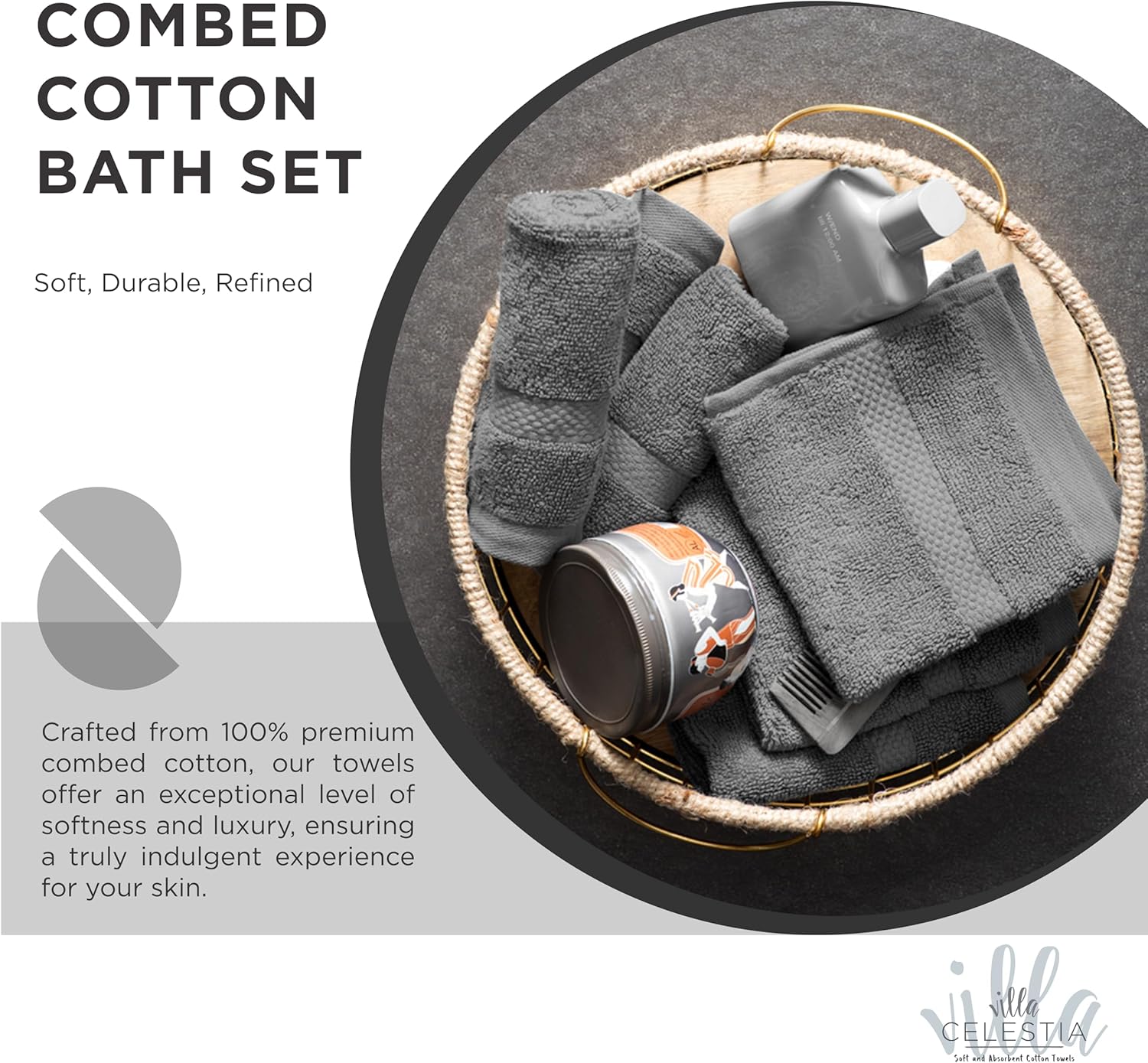 100% Cotton Bath Towel Set of 18-4 Bath Towels, 6 Hand Towels, 8 Wash Cloths, Sustainable, Soft, Highly Absorbent, Combed Cotton 18 Piece Set for Hotels, Spa, Bathroom, Dorm, Grey