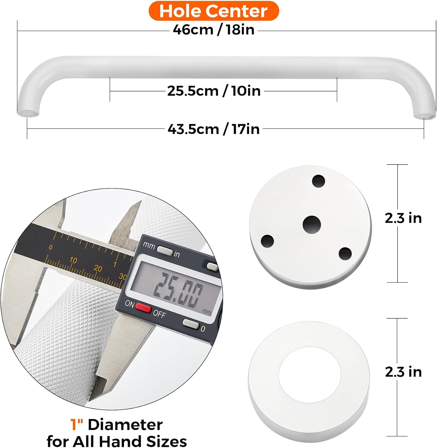 Grab Bars for Shower, 2 Pack 18-Inch Anti Slip Shower Handles for Elderly, Safety Shower Grab Bar, Stainless Steel Handicap Grab Bars for Bathroom (White 1" Diameter)