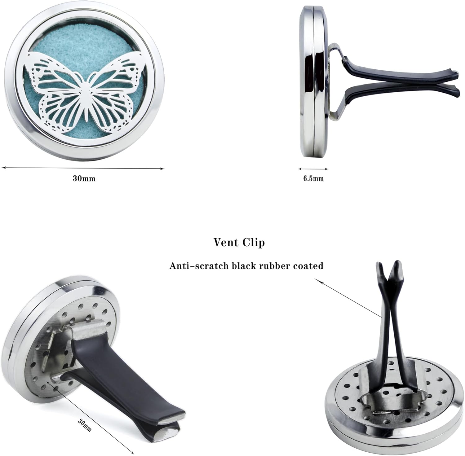 - 【Material 】high quality 316L stainless steel 30mm Car Diffuser Vent Clip, solid and smooth, anti-corrosion, easy to clean, we pair our diffuser car vent with reusable 10 color refill pads. Complete with a solid back and two magnets for a secure close, you’ll never have to worry about getting essential Oil all over your car.