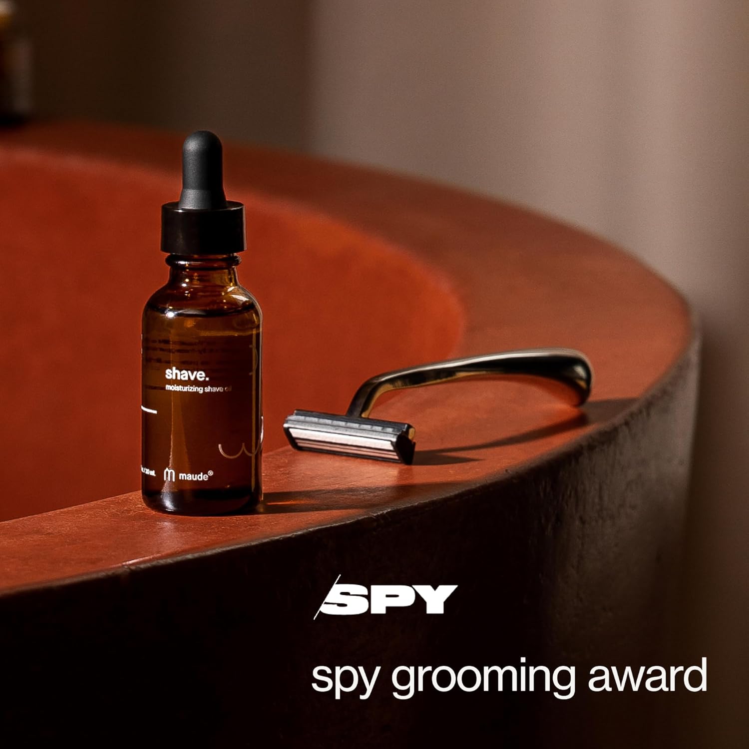 Maude Shave - Moisturizing Shave Oil for Hair Removal & Body Care - For Sensitive Areas, Legs, Underarms & Face - Made with Almond & Jojoba Oil + Light Cedarwood Scent (1 oz)