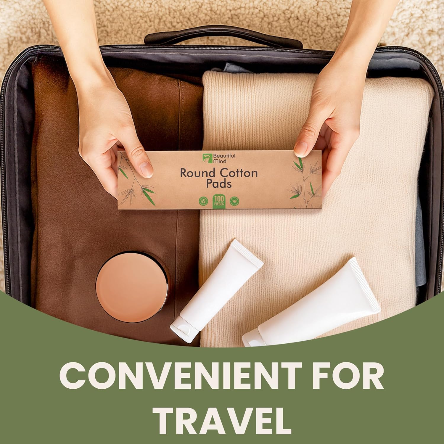 Cotton Round Pads for Face 100 Pack - 3 Layer Eye Makeup and Nail Polish Remover - Lint Free Cleansing Circle Pad for Facial Exfoliating, Toner - Travel Size Skin Care Rounds