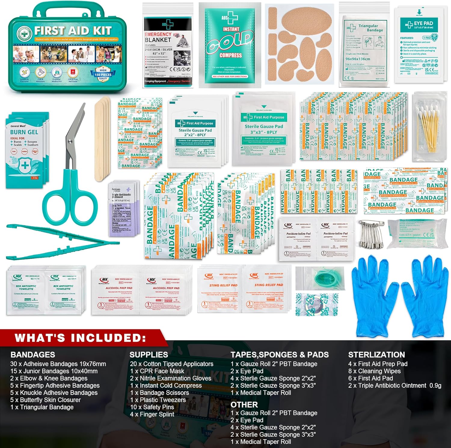 General Medi 150 Pieces Hardcase First Aid Kit - First Aid Box Contains Premium Medical Supplies for Travel, Home, Office, Vehicle, Camping, Workplace & Outdoor