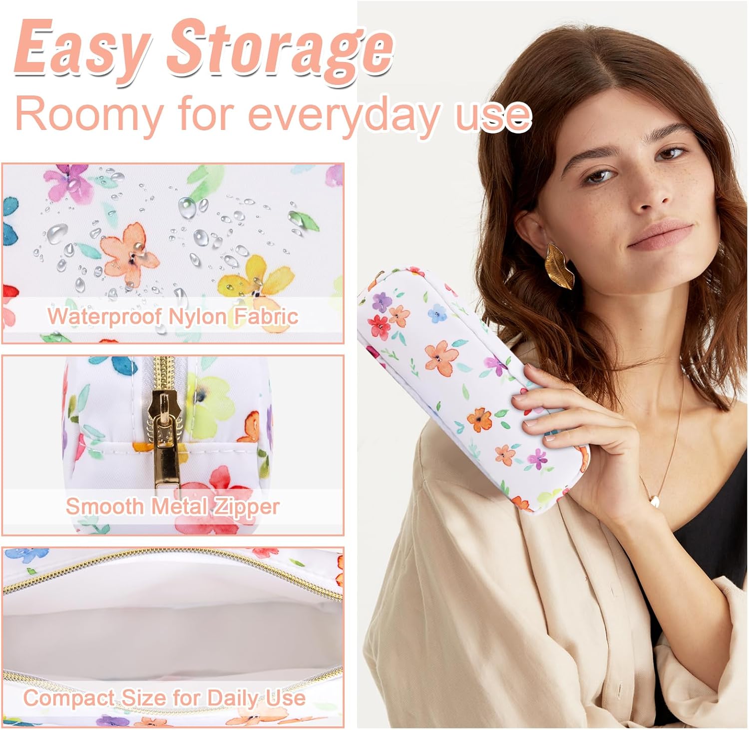 - ❤【Premium Materials】Slim Small floral makeup bag is made of high-quality nylon waterproof material and durable gold zipper, which does not fade, has no peculiar smell, and is durable. Stylish appearance, easy to wipe clean, dustproof and waterproof. The makeup pouch interior is covered with thick sponge to protect your belongings at all times.
