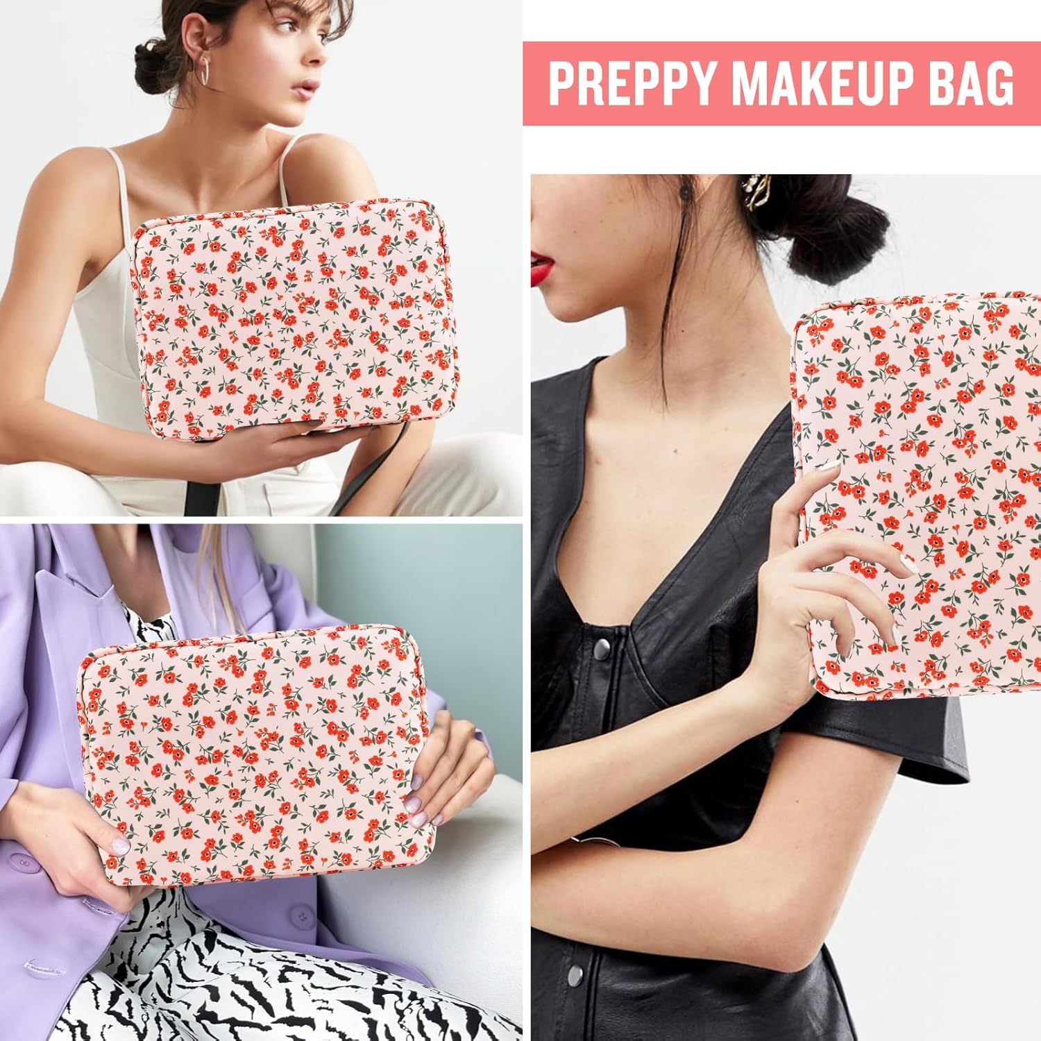 - ❤【Multiple Sizes & Colors】Large, Small, Mini, or Slim, we have it all! Cosmetic bags are available in many colors: Blue-Daisy, Green-Daisy, White-Flower, Pink-Flower and other colors for you to choose. Nylon makeup bag for purse can be used for travel, outdoors and organization, it can be used as a purse bag, travel pouch, clutch, makeup organizer and more.