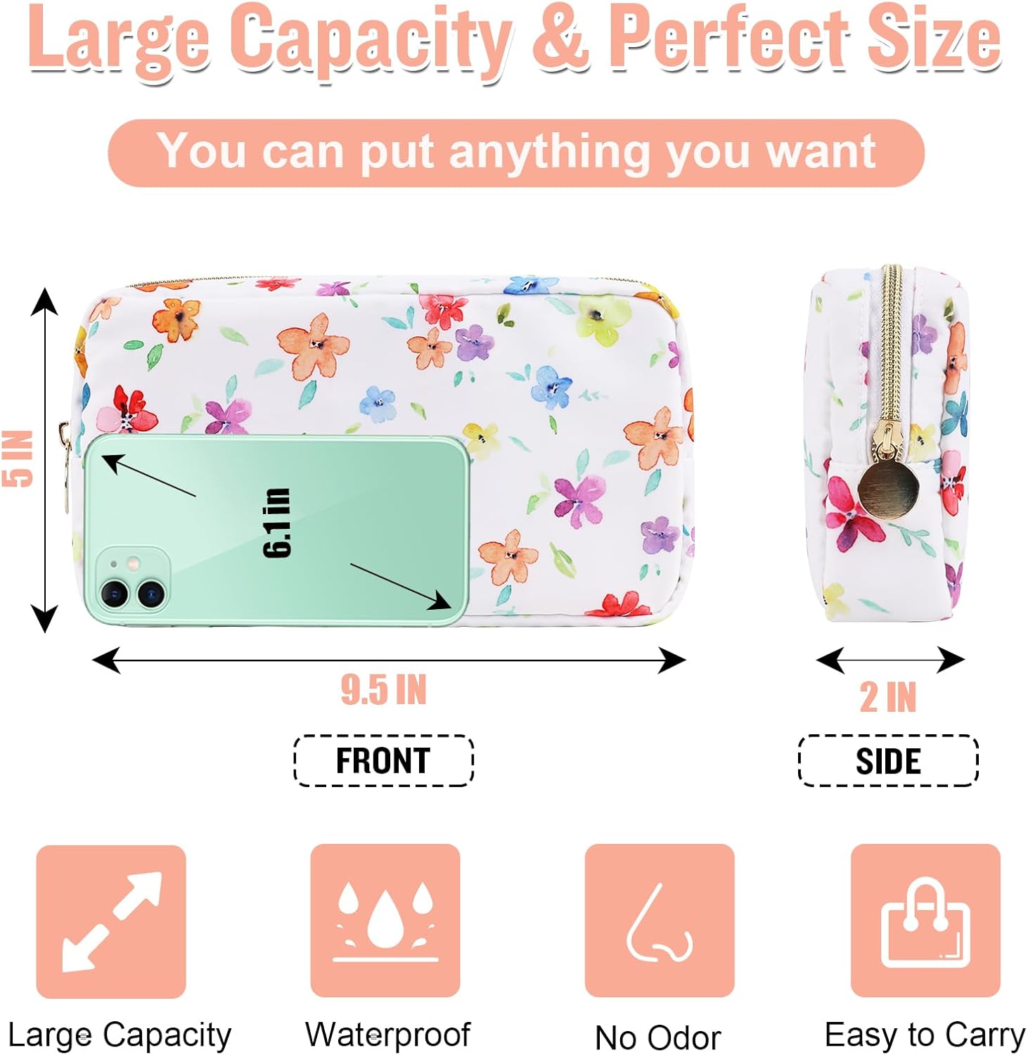 - ❤【Multiple Sizes & Colors】Large, Small, Mini, or Slim, we have it all! Cosmetic bags are available in many colors: Blue-Daisy, Green-Daisy, White-Flower, Pink-Flower and other colors for you to choose. Nylon makeup bag for purse can be used for travel, outdoors and organization, it can be used as a coin pouch, purse bag, travel pouch, clutch, makeup organizer and more.
