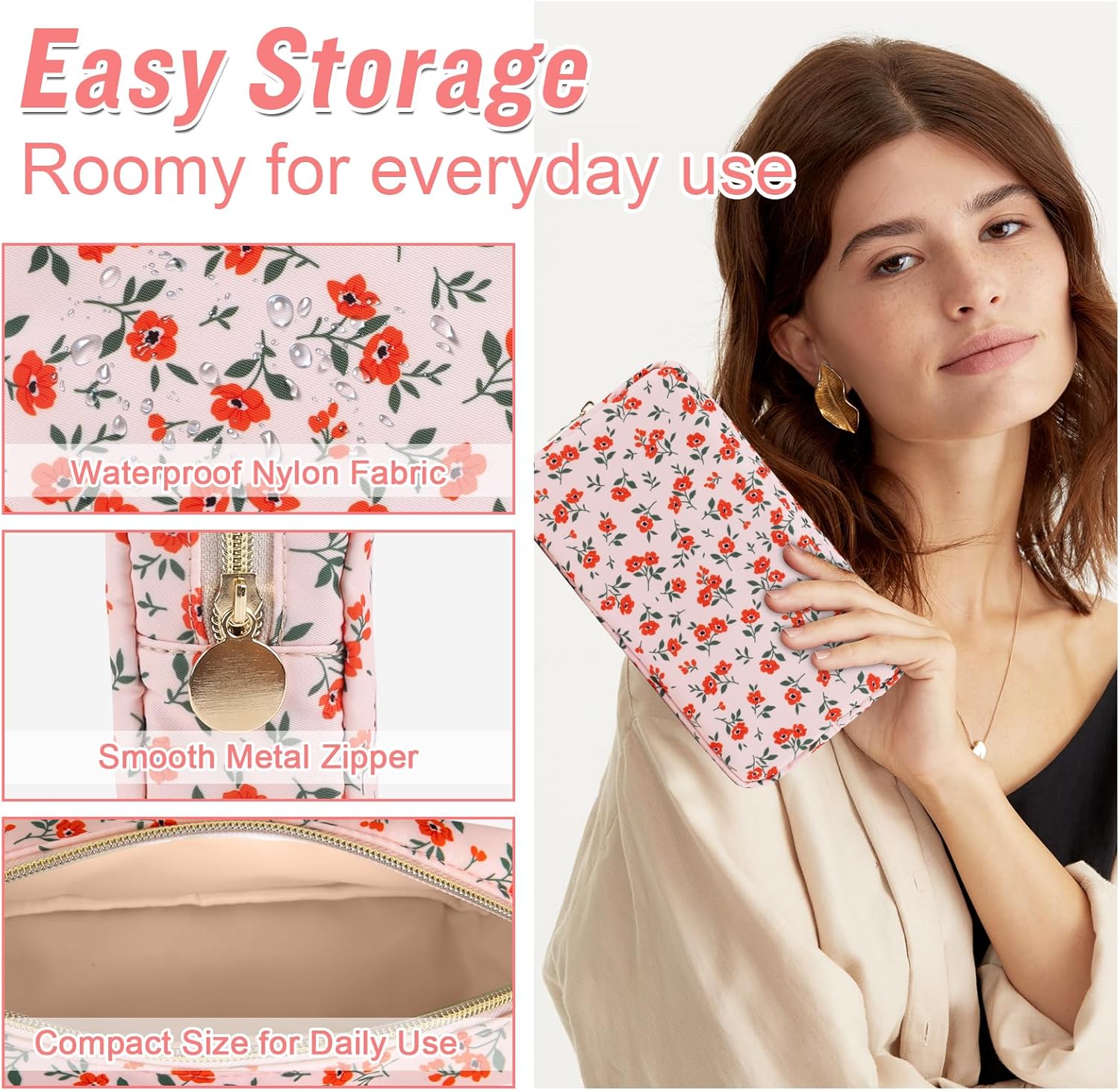 - ❤【Premium Materials】Small floral makeup bag is made of high-quality nylon waterproof material and durable gold zipper, which does not fade, has no peculiar smell, and is durable. Stylish appearance, easy to wipe clean, dustproof and waterproof. The makeup pouch interior is covered with thick sponge to protect your belongings at all times.