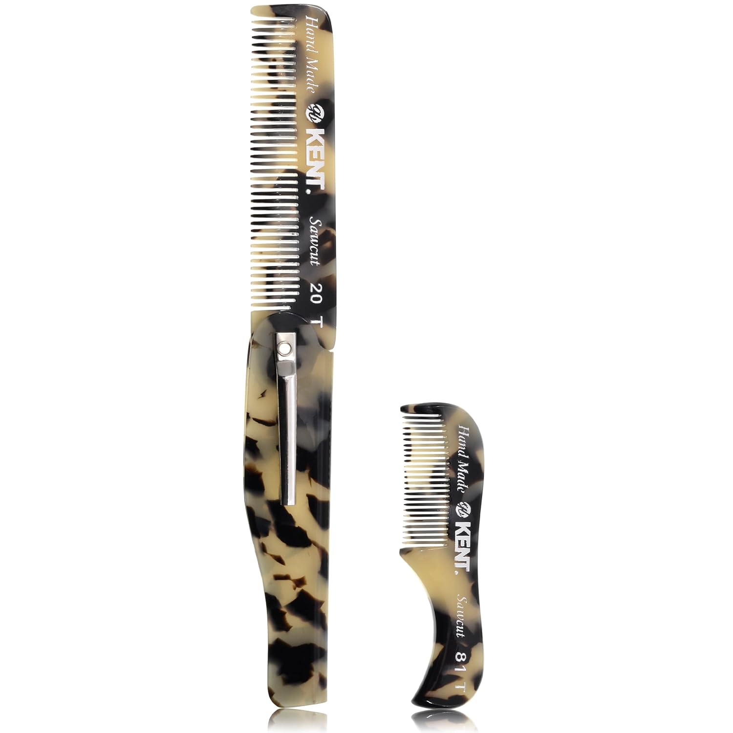 Kent 20T Handmade Fine Tooth Folding Comb with Hand Made Pocket Comb for Beards and Mustache - Beard Growth/Fine Tooth - Beard Straightener for Mens Grooming Kit