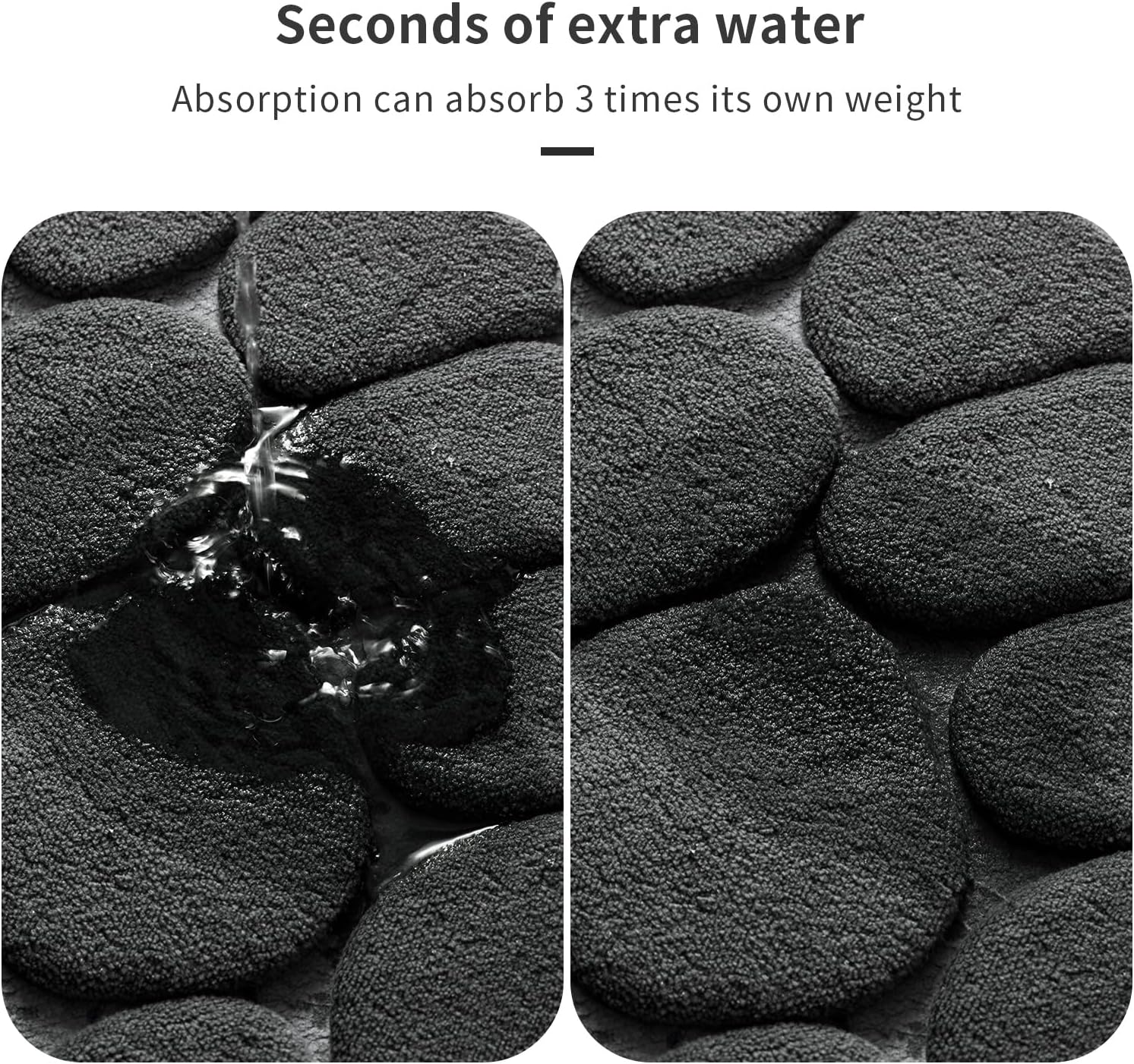 YIHOUSE Memory Foam Bath Mat Cobblestone Bathroom Rugs Super Water Absorbent Bath Mats for Bathroom Machine Washable Bath Rugs(20 x 24,Black)