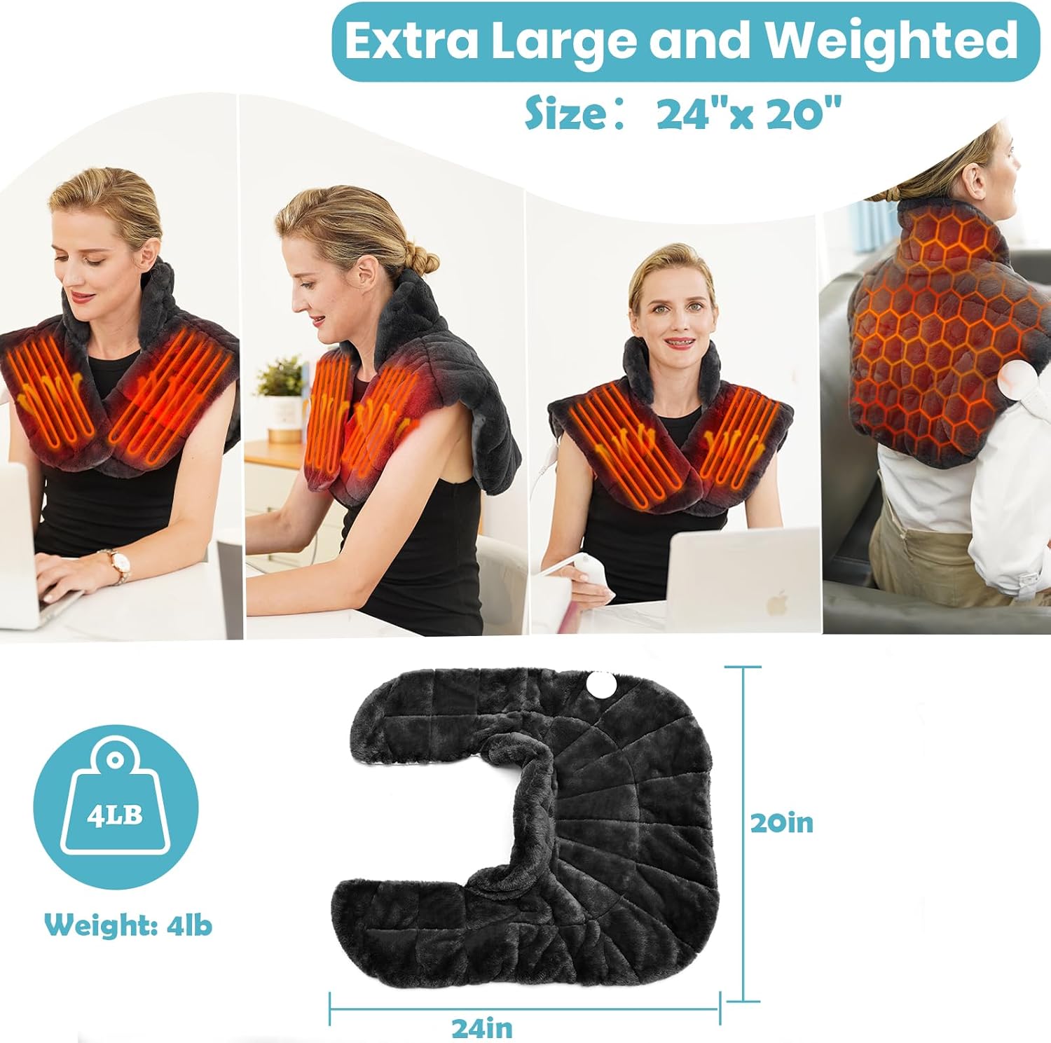 Nalax Heating Pad for Neck and Shoulders and Back, Luxurious Faux Rabbit Fur Fabric, 2.2lb Tourmaline Weighted Heating pad, 6 Heat Settings,2H Auto Off,Memory Function, Gift for Women 24"x 20"