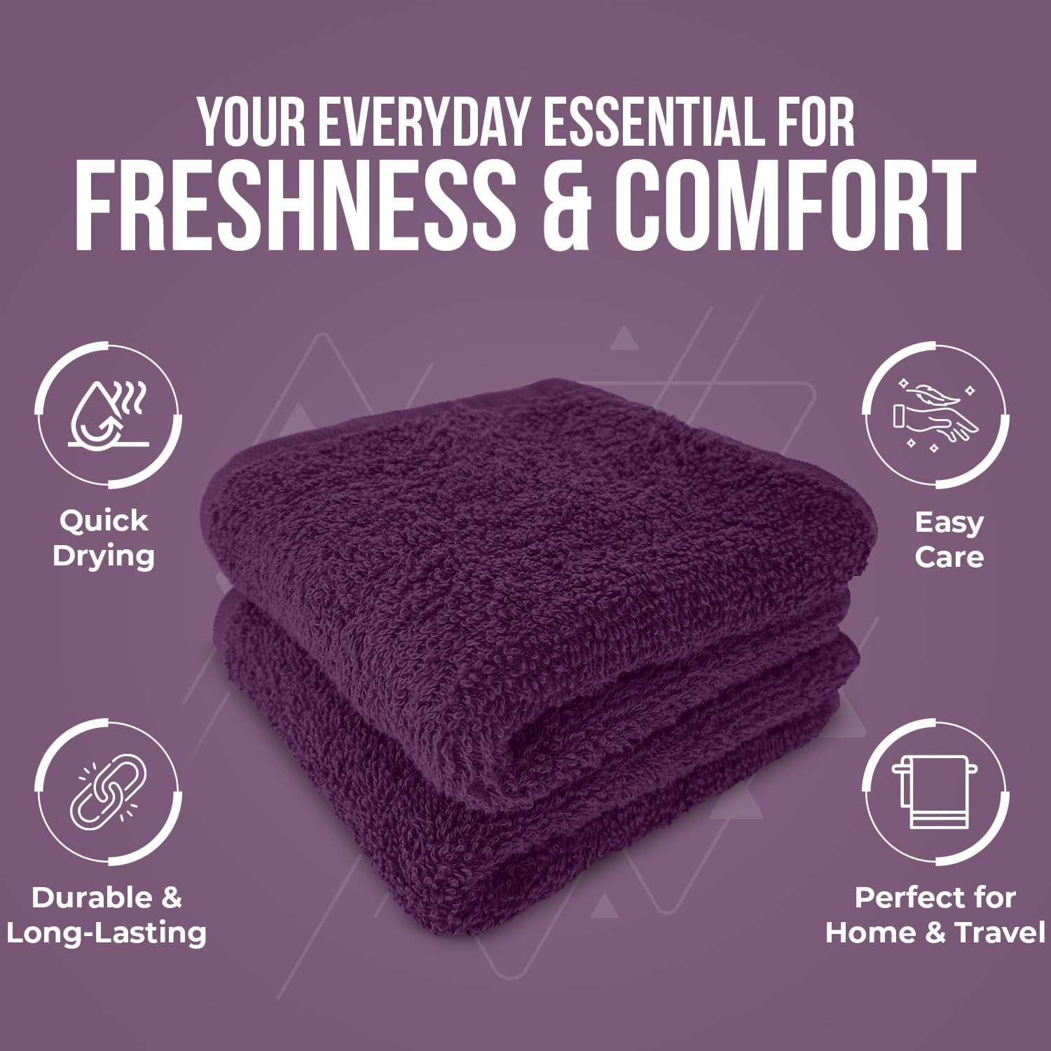 DAN RIVER 100% Cotton Wash Cloths 12 Pack [12x12] Soft & Absorbent wash rag, Gym, Hotels & Spa Perfect for Everyday Use Fingertip Towels, Purple Passion