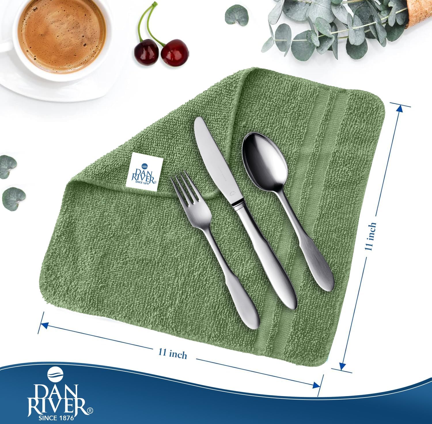 DAN RIVER 100% Cotton Washcloths 20 Pack Premium Quality Face and Body Cloth, Quick Dry Essential Towels for Bathroom, Hand, Kitchen & Cleaning, Baby Rugs | 11X11 in | 400 GSM | Sage Green+White