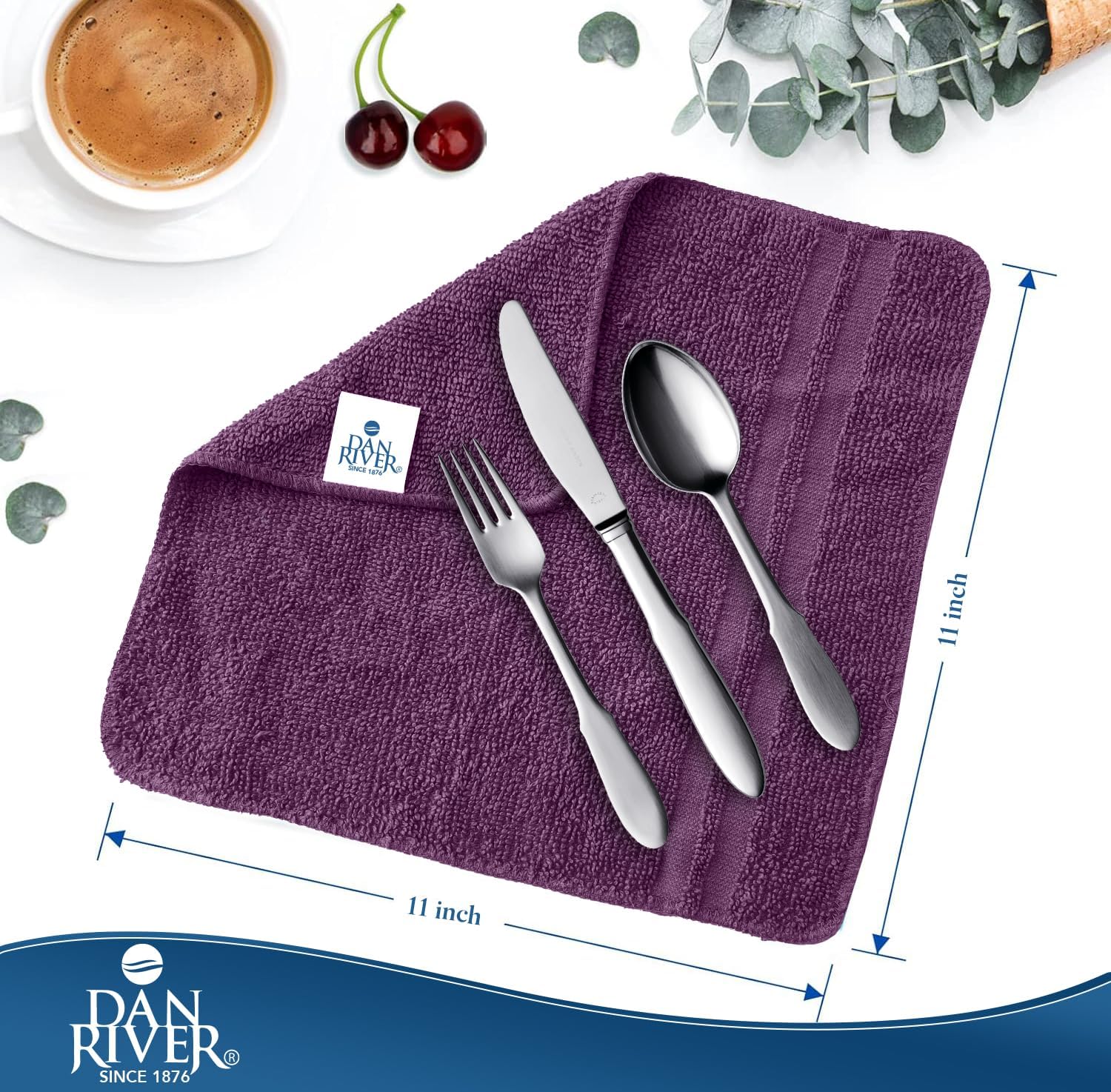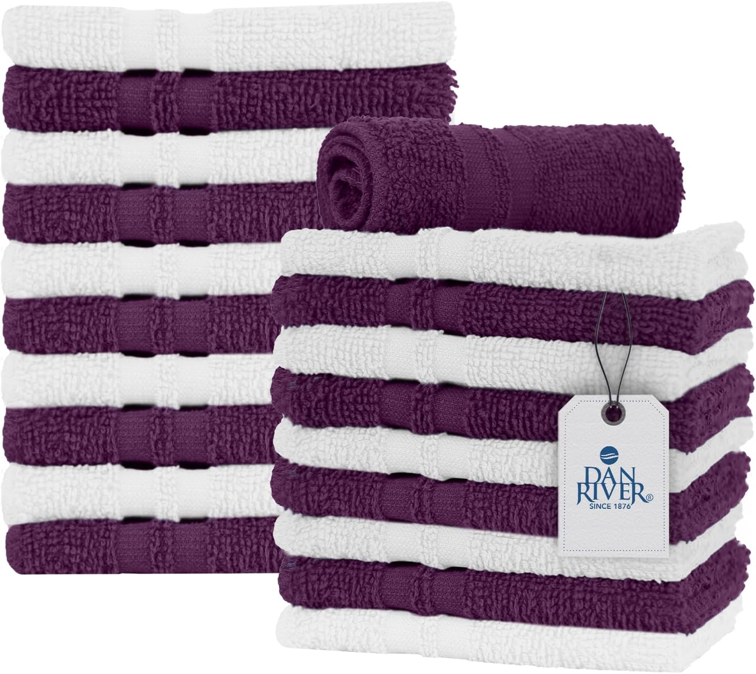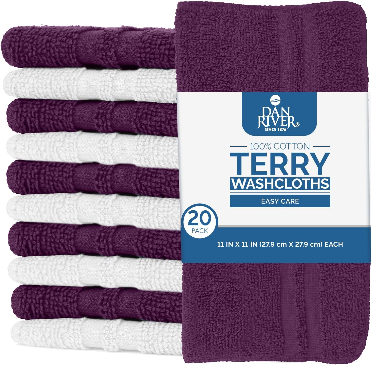 DAN RIVER 100% Cotton Washcloths 20 Pack Premium Quality Face and Body Cloth, Quick Dry Essential Towels for Bathroom, Hand, Kitchen & Cleaning, Baby Washcloths | 11X11 in|400 GSM|Purple Passion+White