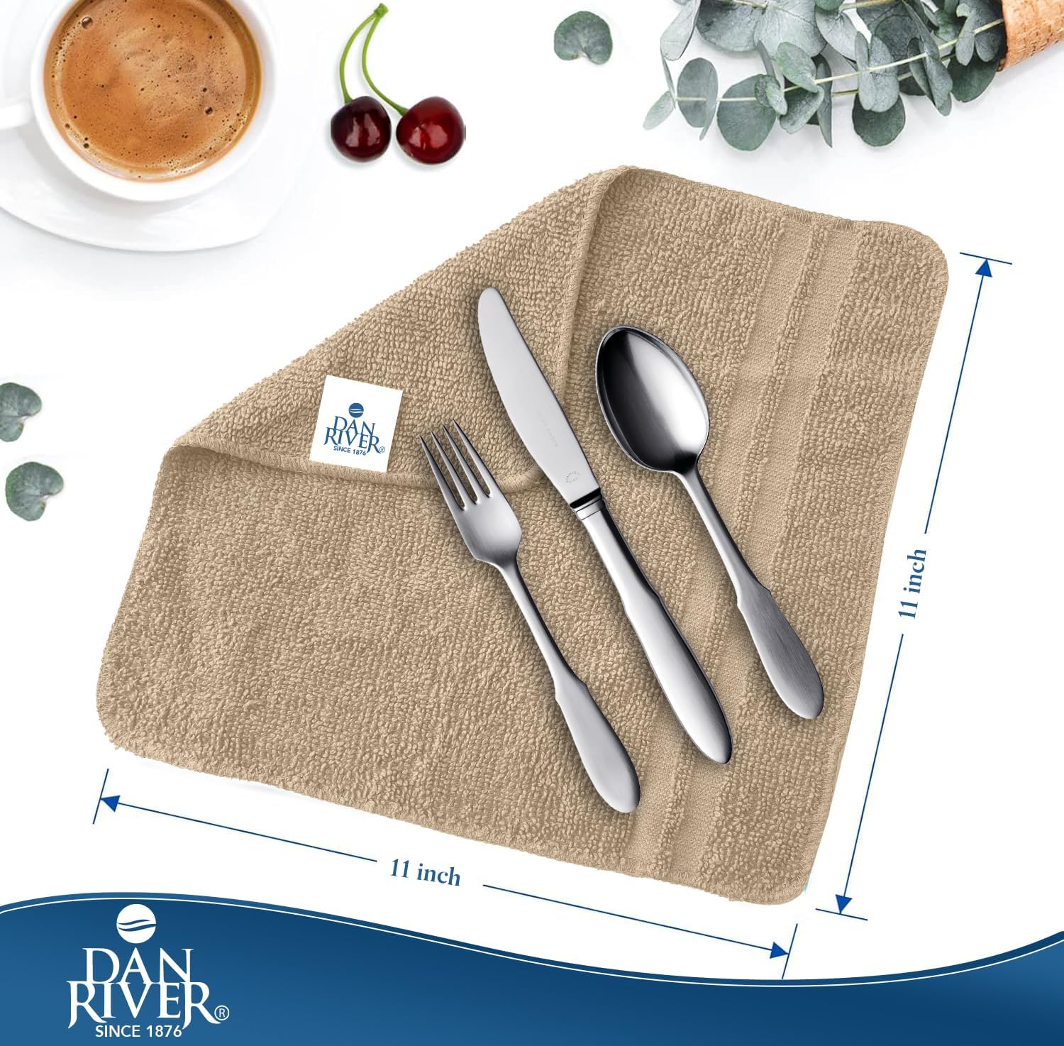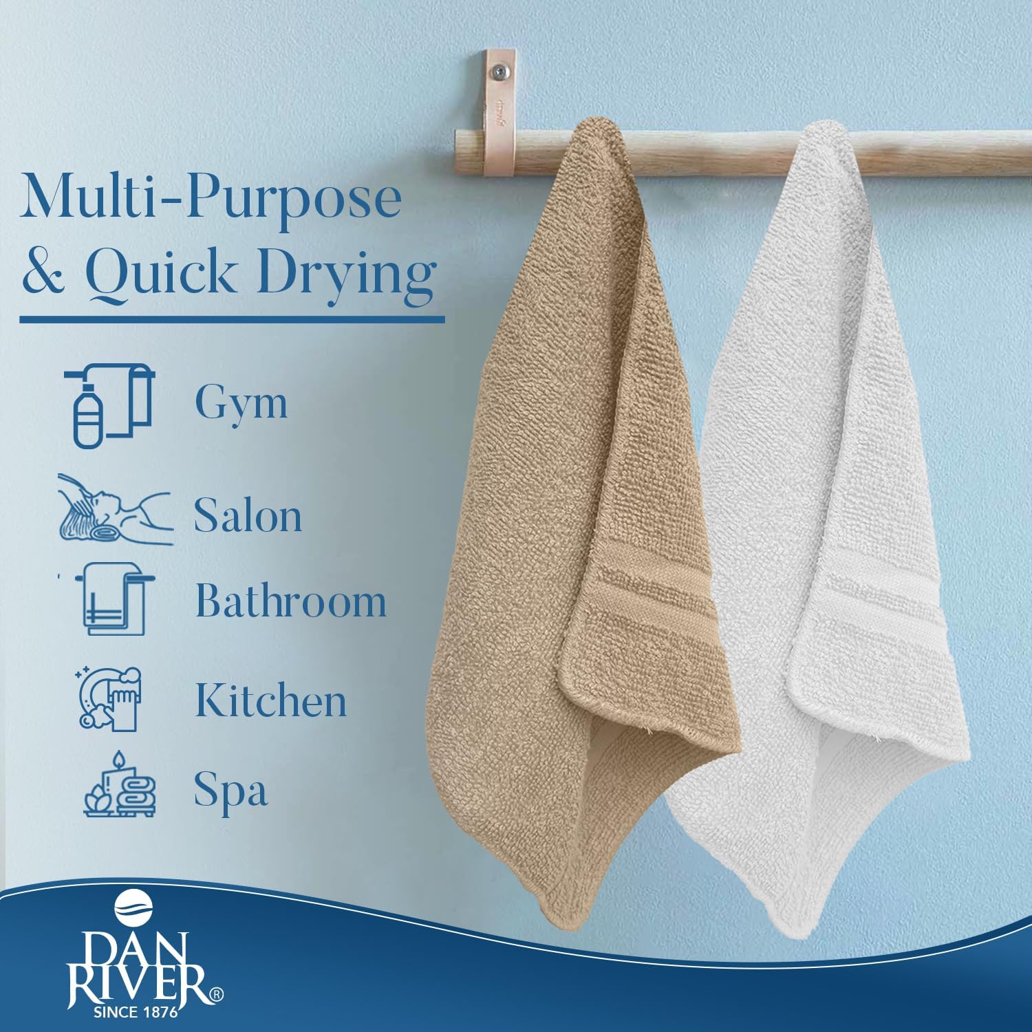 DAN RIVER 100% Cotton Washcloths 20 Pack Premium Quality Face and Body Cloth, Quick Dry Essential Towels for Bathroom, Hand, Kitchen & Cleaning, Baby Washcloths | 11X11 in | 400 GSM | Tan + White