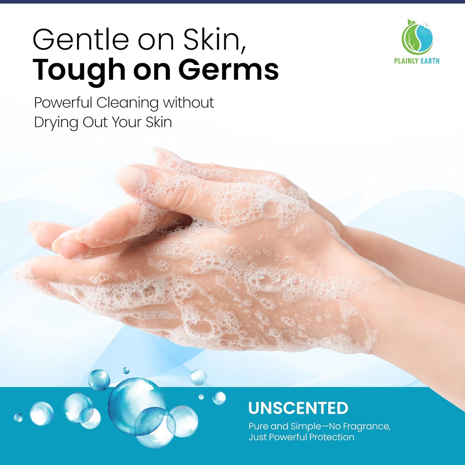 - Gentle on Skin: Made with clean, nourishing ingredients, our unscented anti microbial soap helps keep your hands smooth and soft, even with frequent use. Plainly Earth's gentle formula provides comprehensive defense while caring for your skin, making it an ideal choice for everyday hygiene.