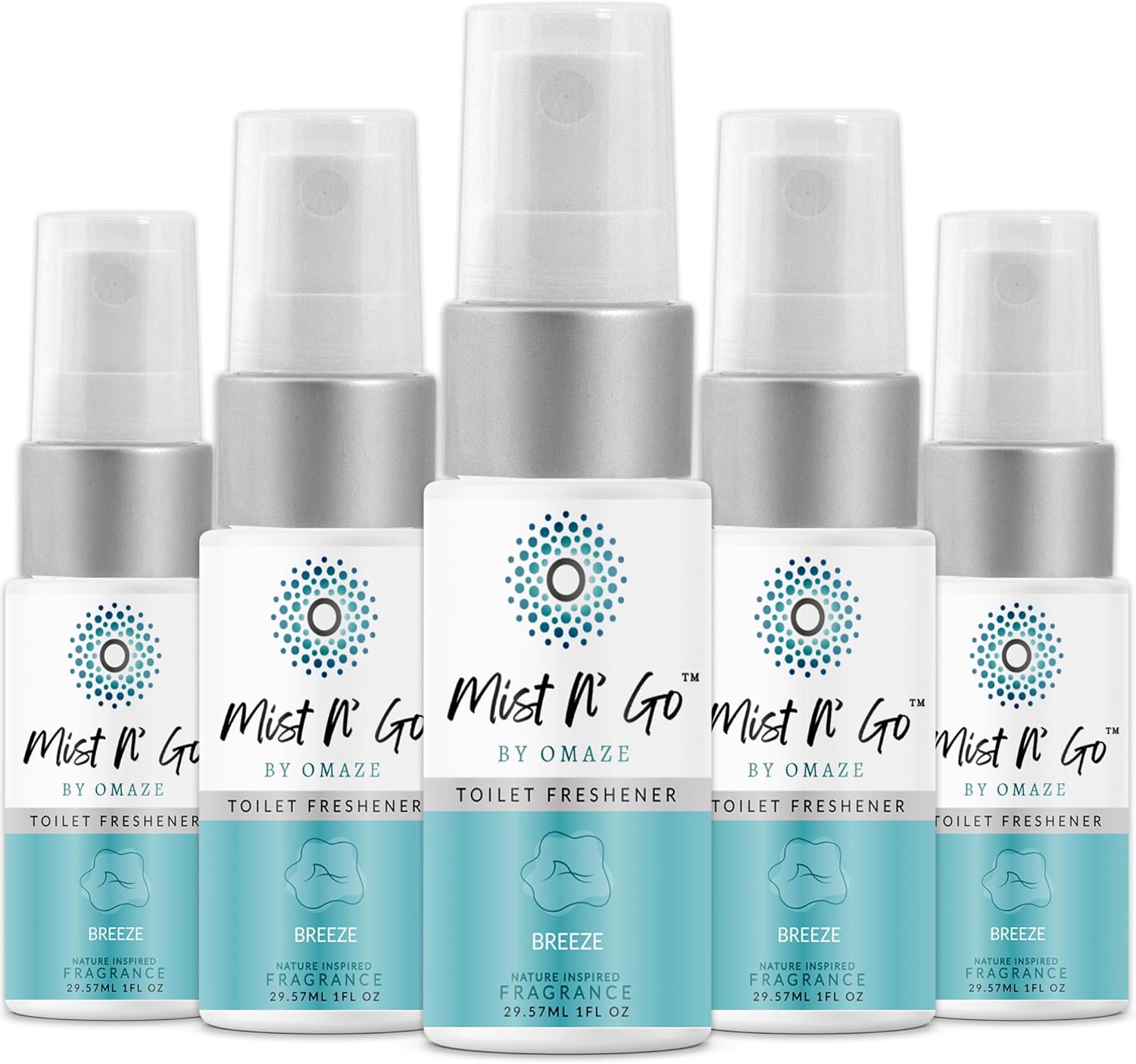 Mist N’ Go by Omaze Travel Bathroom Spray for Toilet Spray Odor Eliminator - Travel Toilet Spray for Bathroom Air Freshener Spray for Bathroom Deodorizer - Breeze Travel Size (1oz x5)