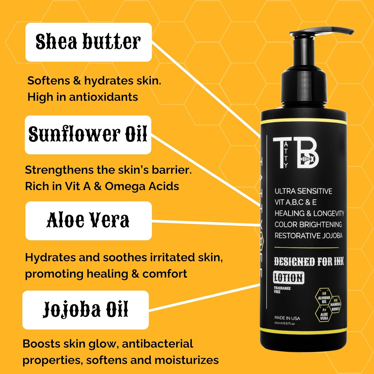 Tattoo Aftercare Lotion – Hydrating Tattoo Moisturizer with Jojoba Oil, Manuka Honey & Vitamins A, B, C & E – Soothes, Heals & Protects Ink – Fast-Absorbing, Non-Greasy – 6.8 fl oz