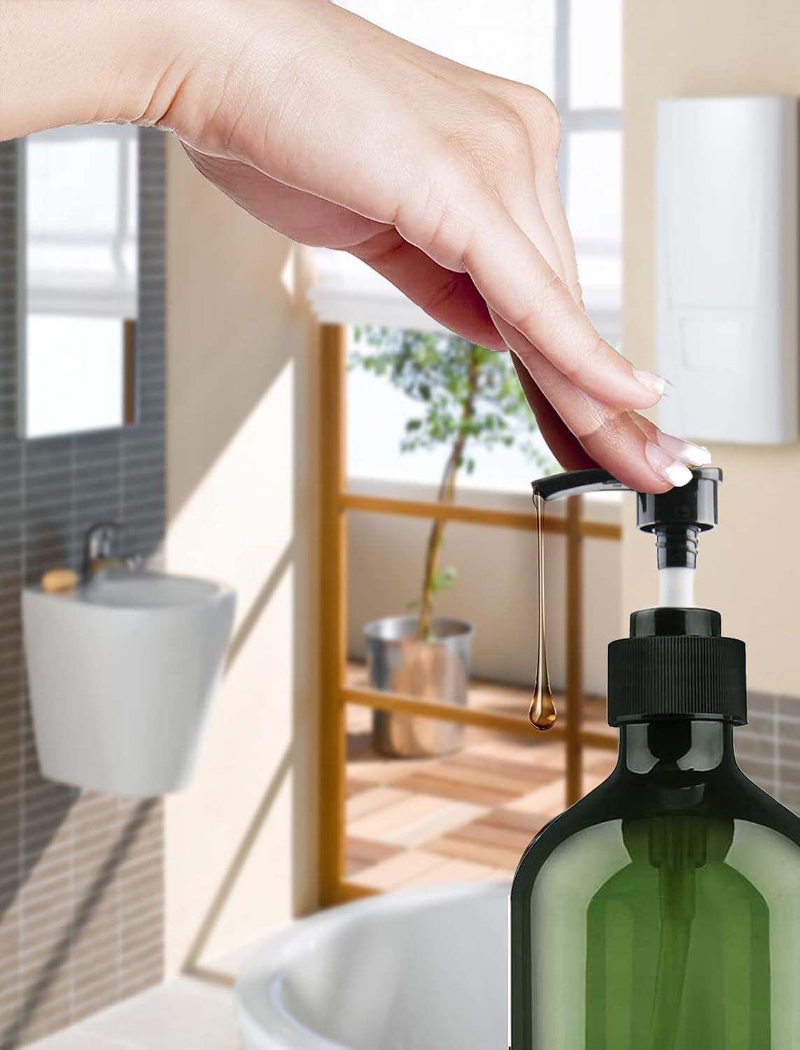 FOOCHY 6 Pack Empty Plastic Bottles with Pump Dispenser and 6pcs Labels Included, Refillable Travel Containers for Hand sanitizer Shampoo Lotion, etc - No BPA/Paraben, 500ml/16.9oz (Green)