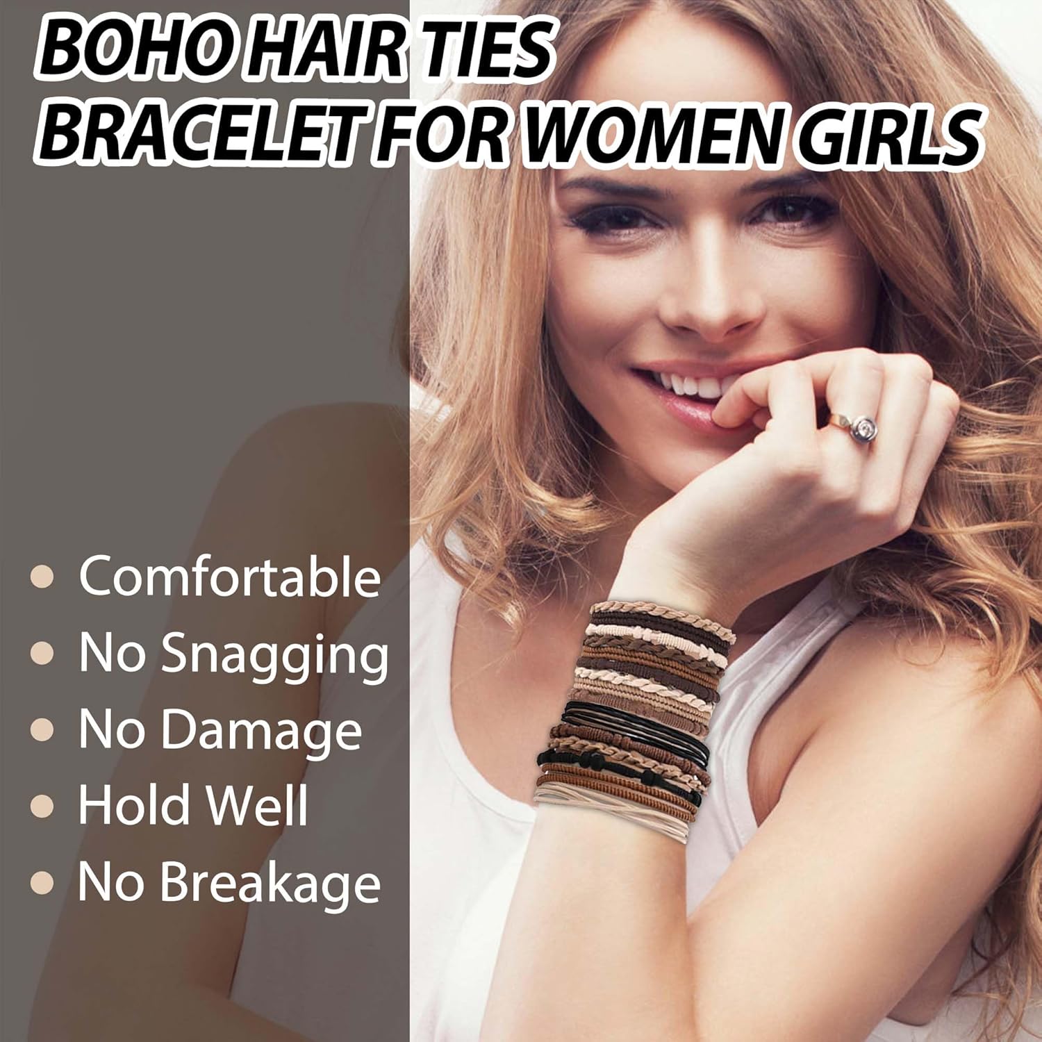 Hair Accessories Set for Women: 20 Boho Hair Ties in 5 Neutral Colors, 4 Stylish Hair Bands Bracelets for Thick or Thin No Damage Ponytails