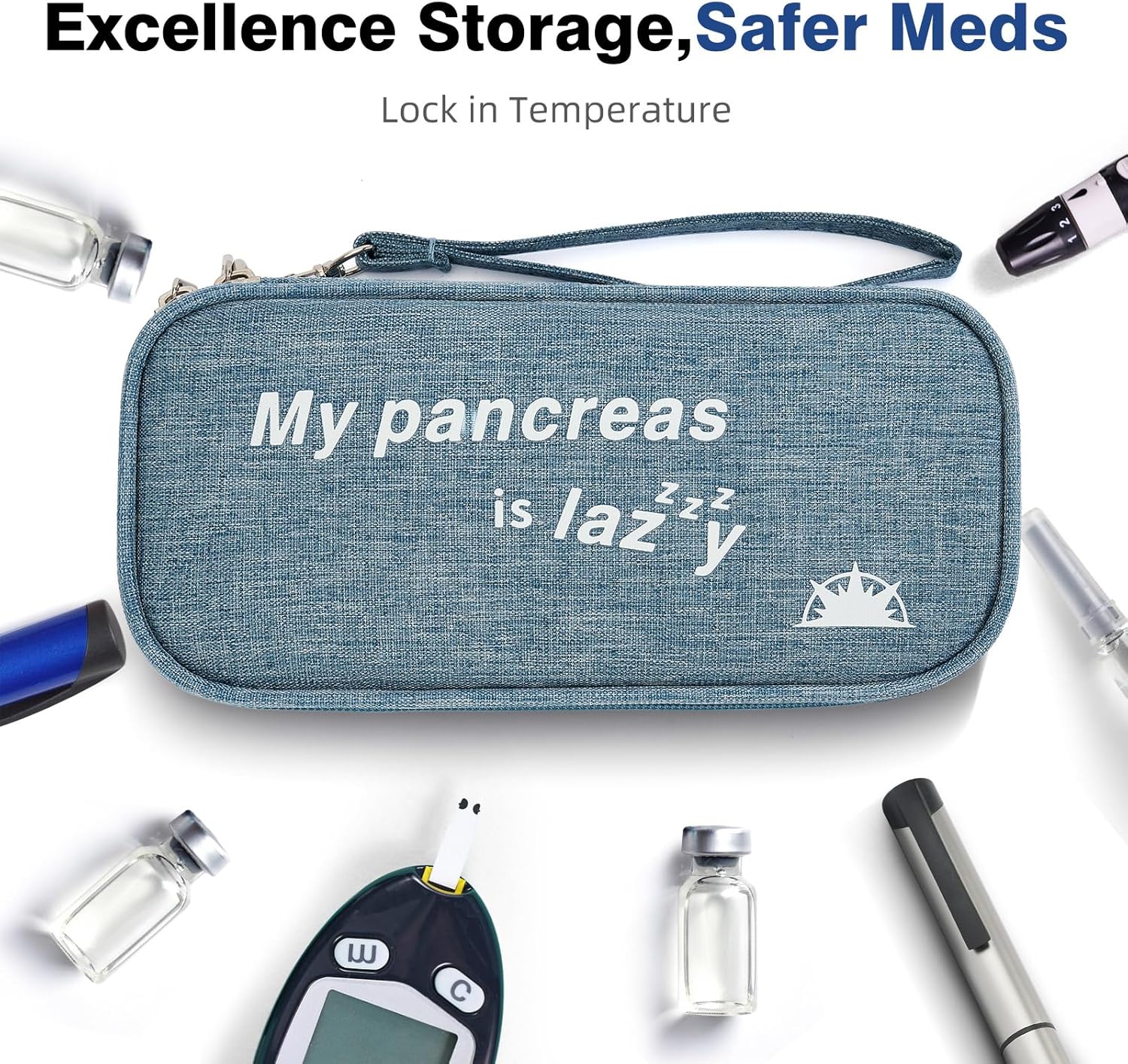 - Fabric survives drops and scratches. Elastic straps hold 1 insulin pens upright, pockets keep vials from rolling. Slim 7.9"x3.5"x1.6" size slides under airplane seats, insulin cooler travel case tsa approved.