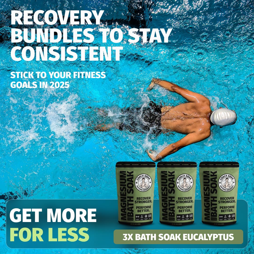 Coach Soak Recovery Bath Soak - Alternative to Epsom Salt Bath Soak - Fast-Absorbing Pure Magnesium Flakes with 21 Minerals, Bath Salts & Essential Oils - 9 lb (3 Pack) - Eucalyptus Tea Tree