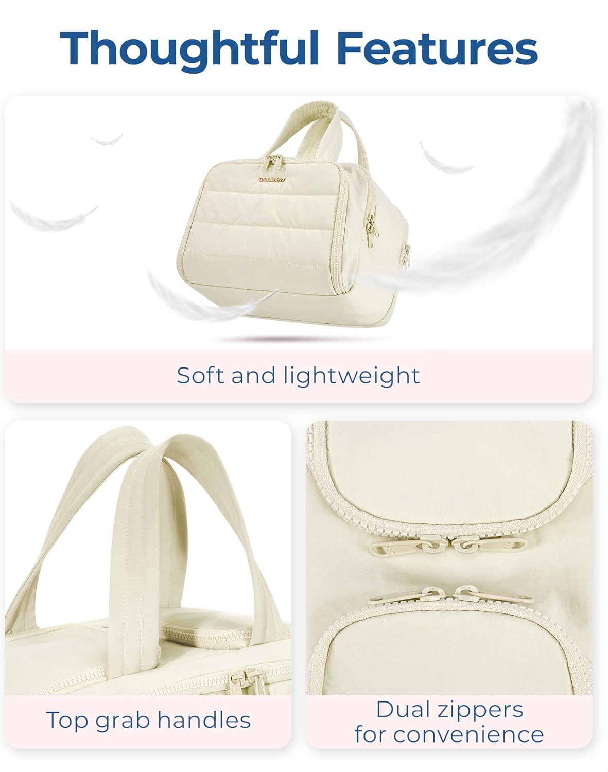 BAGSMART Travel Toiletry Bag, Lightweight Large Wide-open Travel Bag for Women, Puffy Cosmetic Makeup Bag Organizer with Handle for Accessories,Essentials, Toiletries, Beige