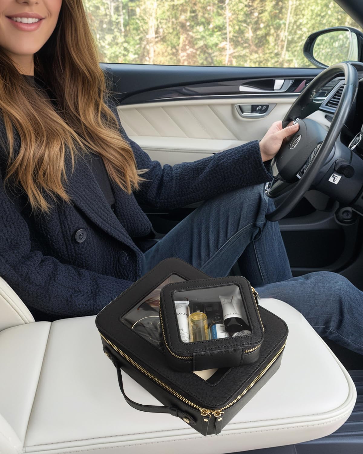 Travel Clear Makeup Bag Set, TSA Approved Cosmetic Bag Case with Zipper Portable Makeup Pouch Toiletry Bag Women Traveling Cosmetic Organizer Storage Bag Car Organizer Car Essentials for Women