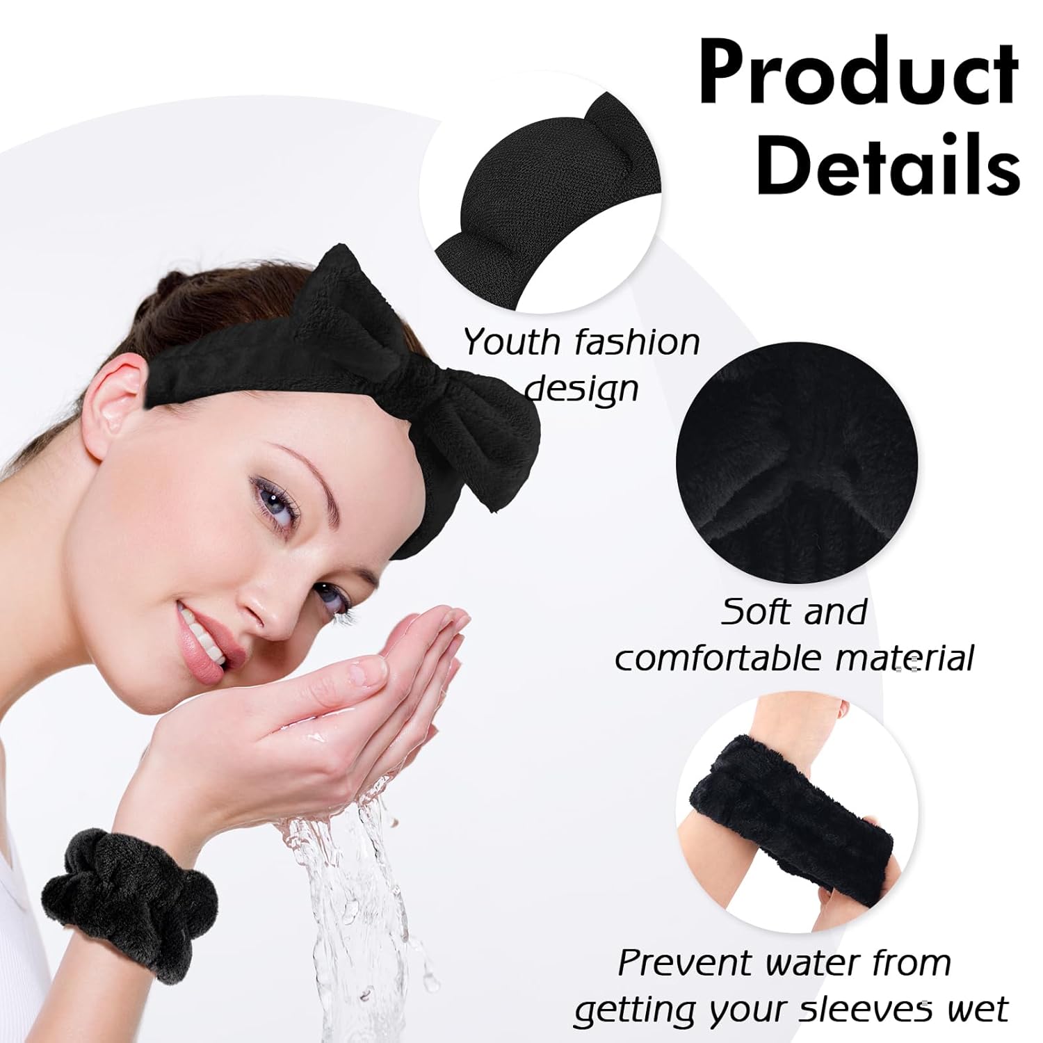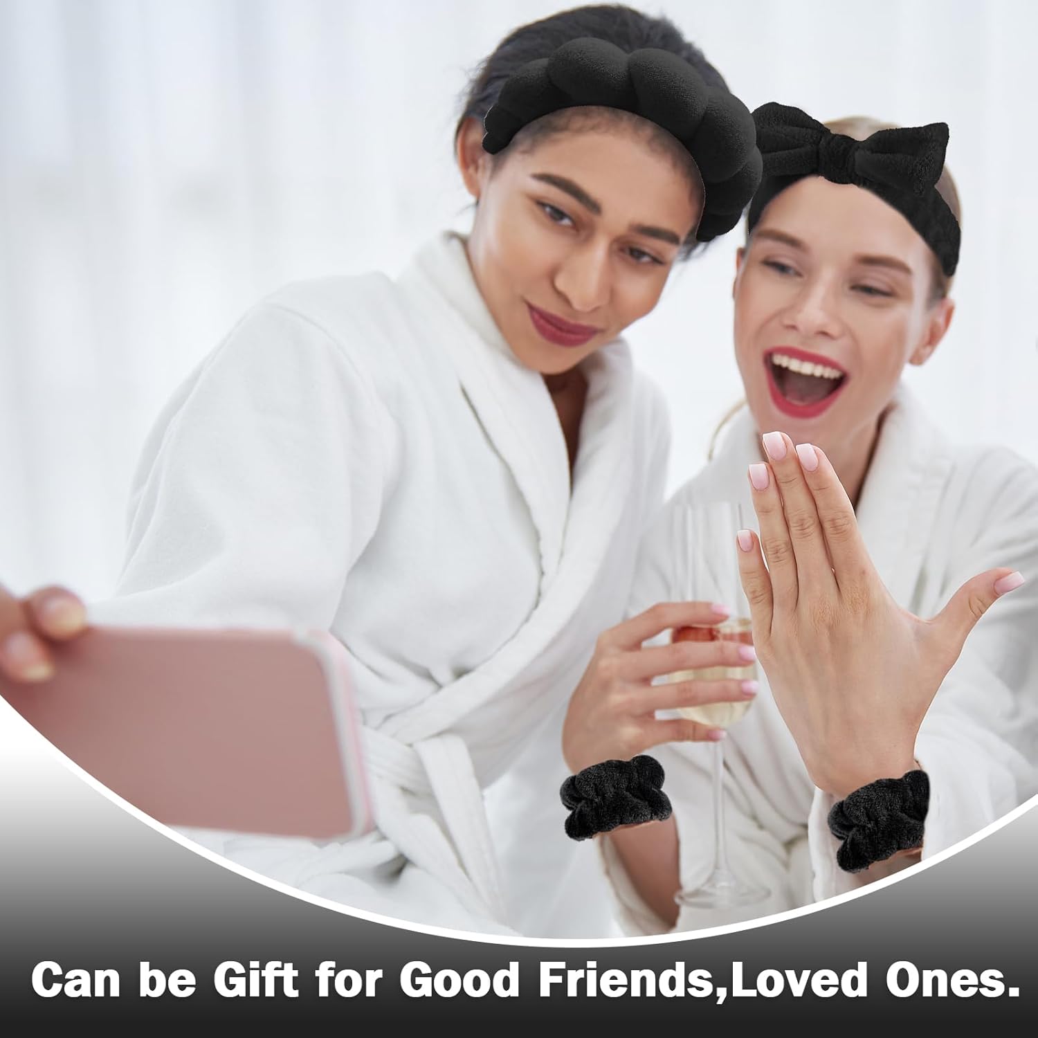 Zkptops 6Pcs Spa Headband for Washing Face Wristbands Set Women Bubble Skincare Makeup Sponge Terry Cloth Padded Puffy Headband Bow Tie Hairband Cute Non Slip Thick Hair Accessory Gifts(Black)