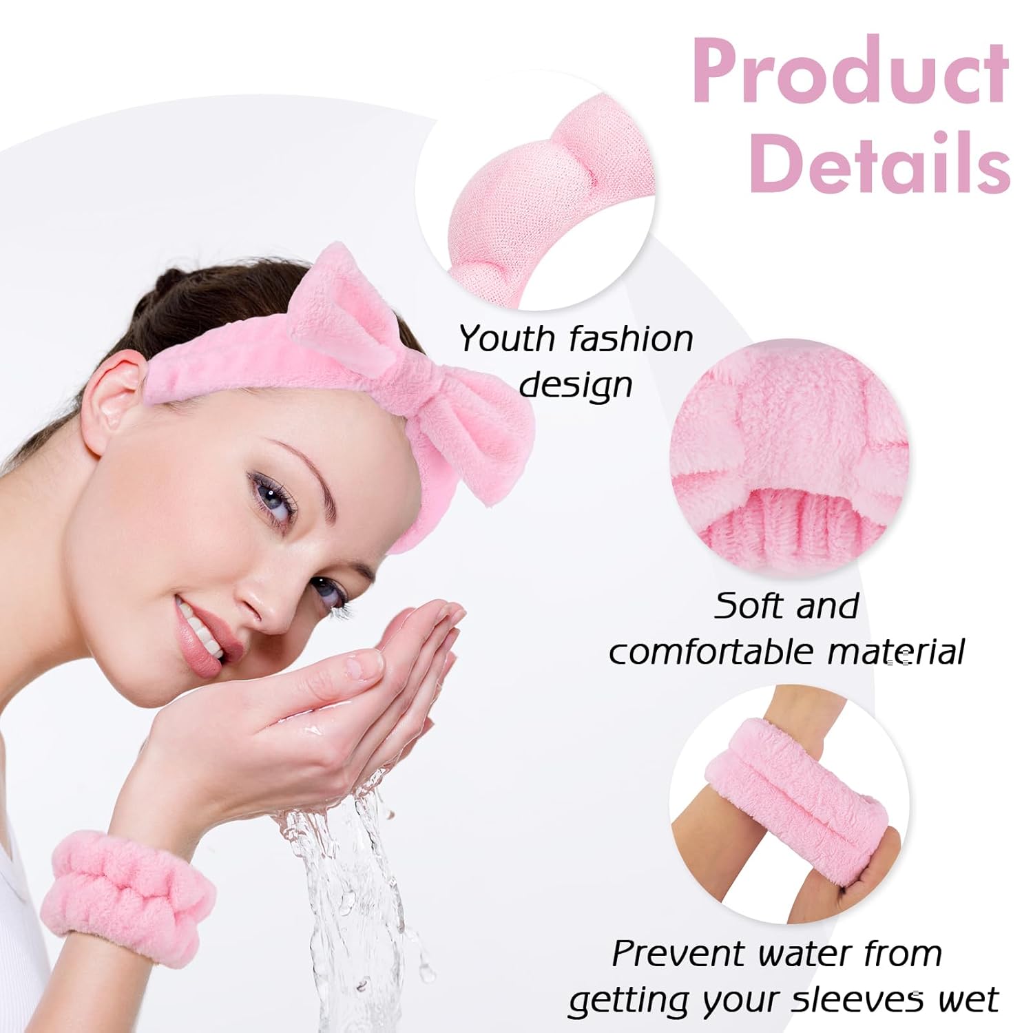 - CUTE DESIGN: Look cute even while washing your face! A side from making your skincare routine easier, this self care headband and wristband have an easy-to-wear design. In addition to making your skin care process more comfortable, spa headband and wristband set allow you to wash your face and skin beautiful. This sponge headband make up of a lined hair band and a thickened sponge design that visually lifts the top of the skull. Cute hair accessories can also versed retouching the face shape.Beauty headband