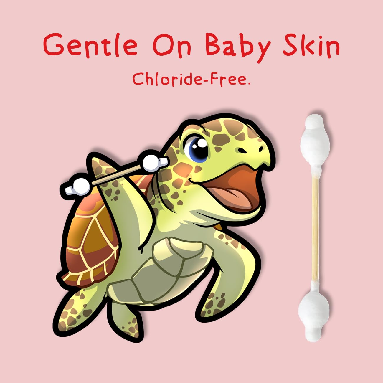- PURE COTTON – Sea Turtle Bamboo Cotton Swabs are spun with organic cotton that is naturally durable, hypoallergenic, and chloride free for the most sensitive skin.