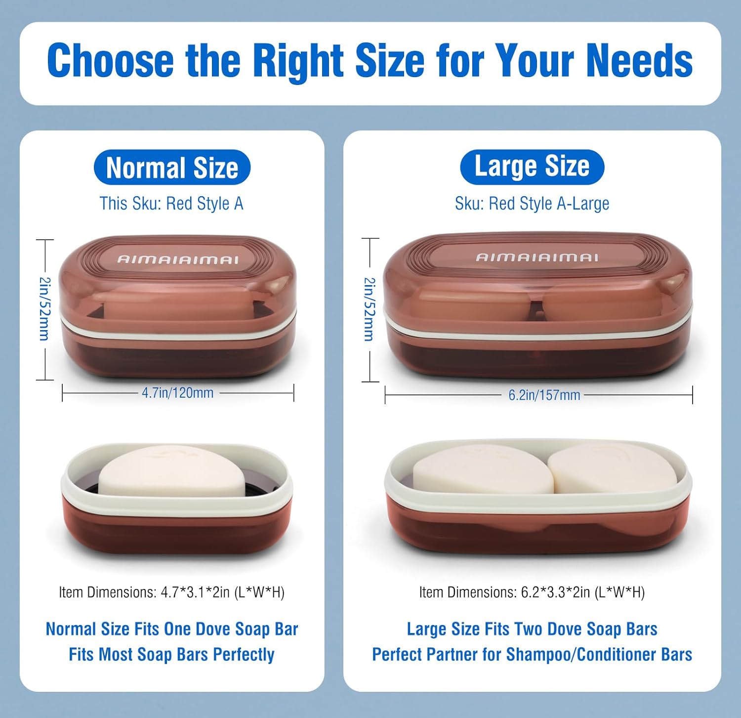 - Perfect Size: The soap bar container measures 4.7" x 3.1" x 2" and fits most bar soaps on the market.