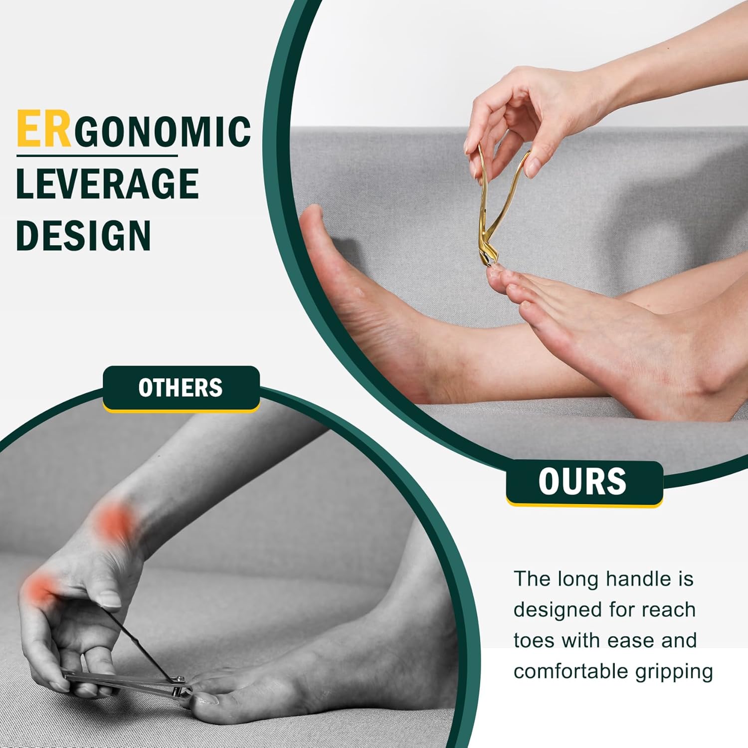 - Comfortable and Clean - Comfort is paramount, especially for seniors. FVION toe nail clippers feature long and wide handles with an ergonomic design, ensuring a comfortable grip and effortless trimming. Plus, the built-in nail catcher prevents clippings from making a mess.