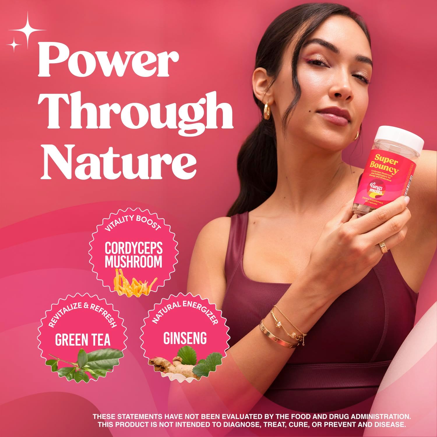 Super Bouncy - Mushroom Supplement - Cordyceps Mushrooms, Green Tea, Ginseng - Energy and Focus (60 Capsules)