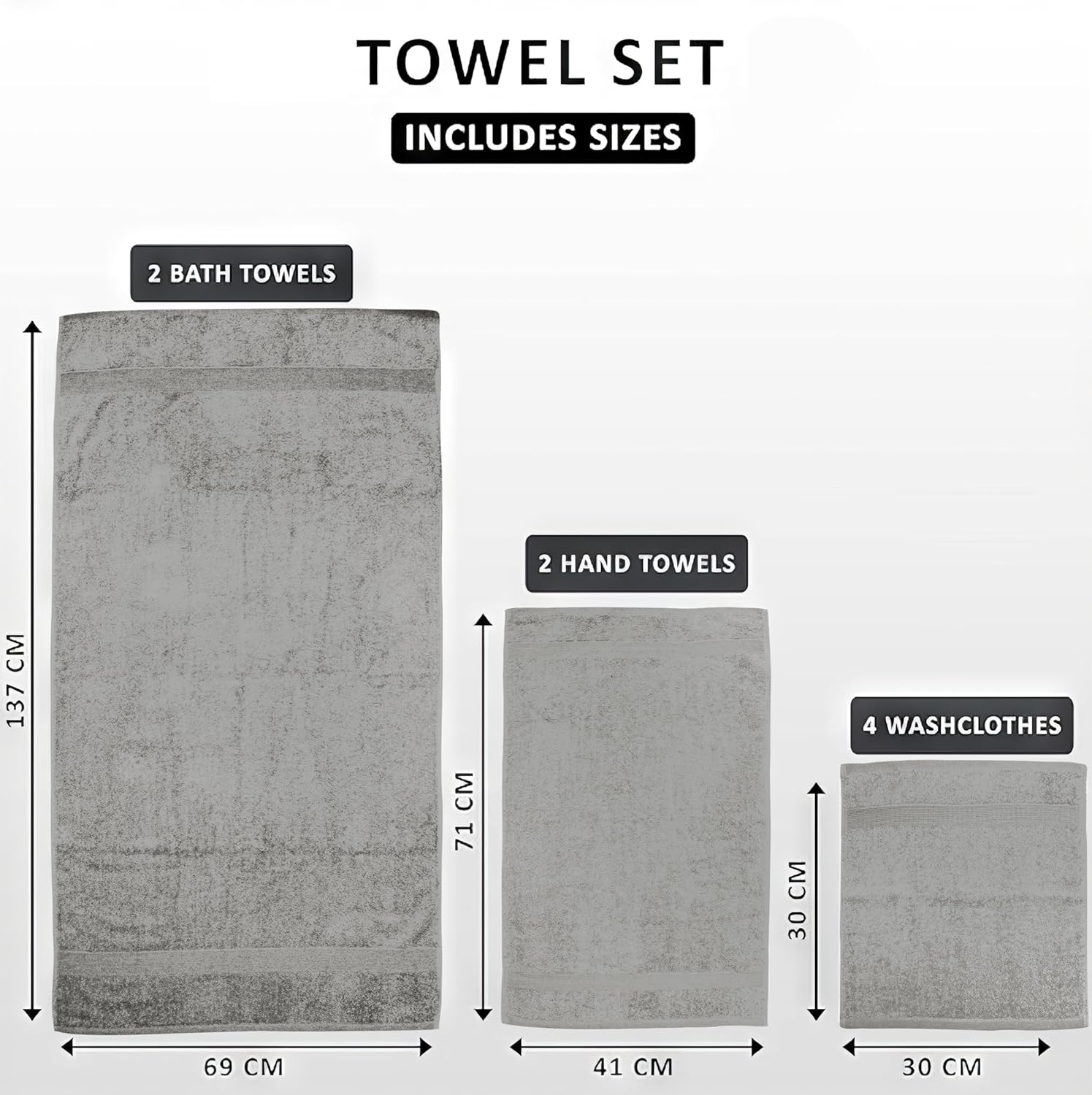 Softolle Luxury 8 Piece Towel Set, 2 Bath Towels 2 Hand Towels 4 Washcloths, Towels for Bathroom, Home, Spa & Gym - Highly Absorbent (Silver Grey)