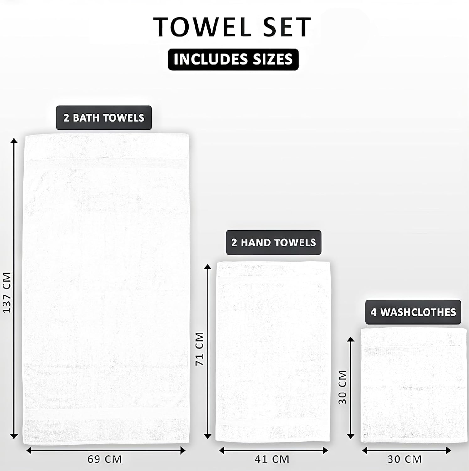 Softolle Luxury 8 Piece Towel Set, 2 Bath Towels 2 Hand Towels 4 Washcloths, Towels for Bathroom, Home, Spa & Gym - Highly Absorbent (White)