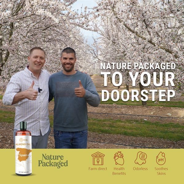 Nature Packaged Sweet Almond Oil - for Skin and Hair - Carrier Oil for Essential Oils Mixing - From EIR Oils' Farm in Mallorca, Spain - 4 Gallons