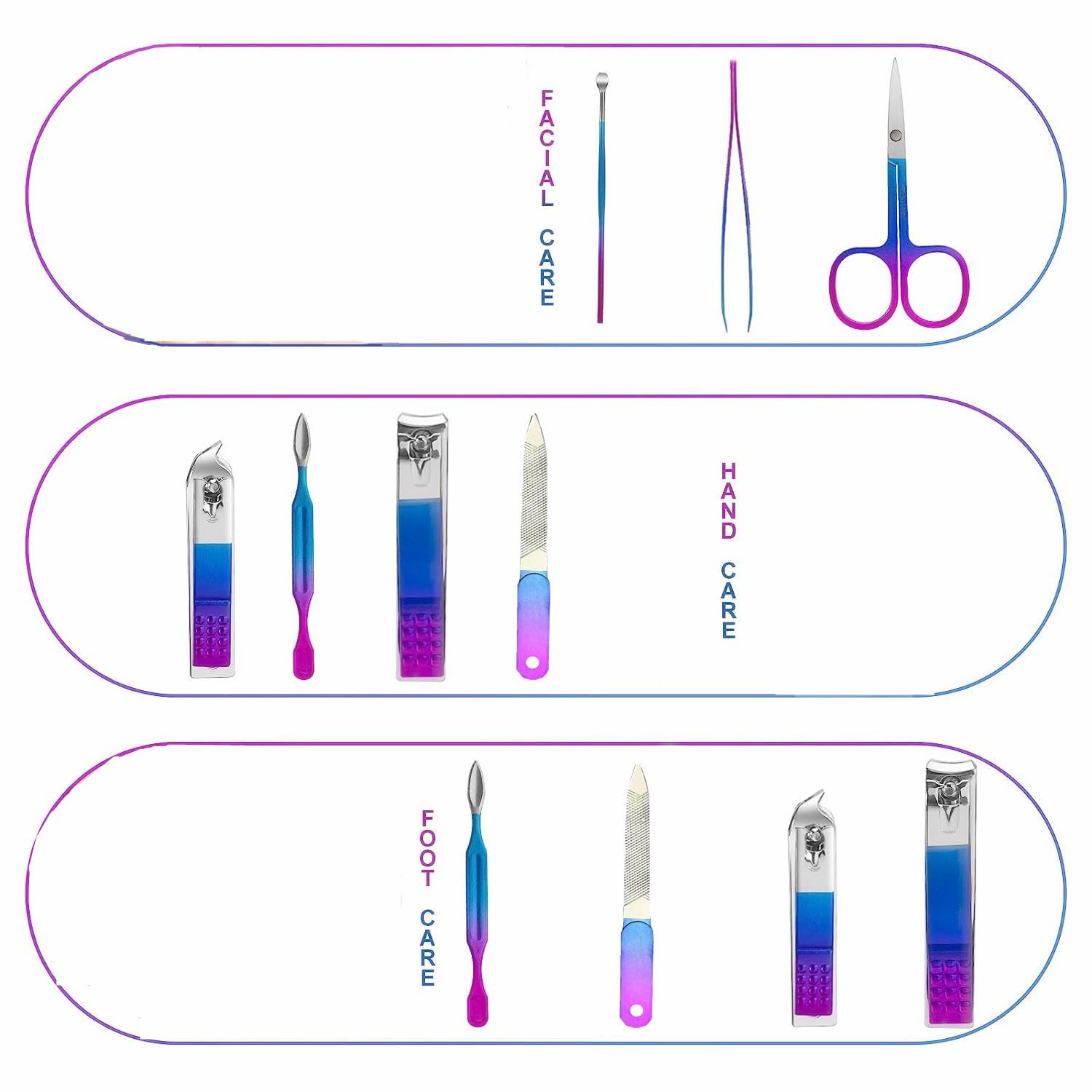 - [Good Material Manicure kit] Premium nail grooming kit for men, boys, teenagers,seniors,women and girls. Our nail clipper blade edge has been sharpened twice which is sharp.Coated with anti-rust coating,not easy to rust. With the sharp and precise blade edge, the cutting edge will not tear or split nails, even thick toe nails can be easily cut off directly. Nail clipper handle with anti-slip ripple texture lever, delivering a more comfortable user experience.