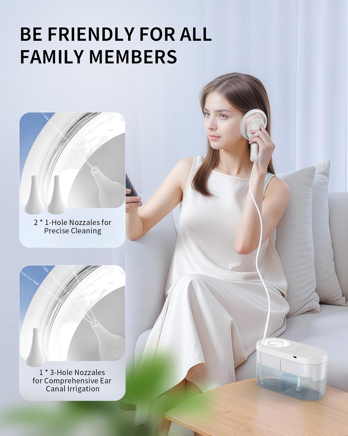 Electric Ear Wax Removal Kit - Water Powered Ear Irrigation System with Sewage Collection, 4 Clean Modes, Safe & Effective, 3 Ear Tips for Adults