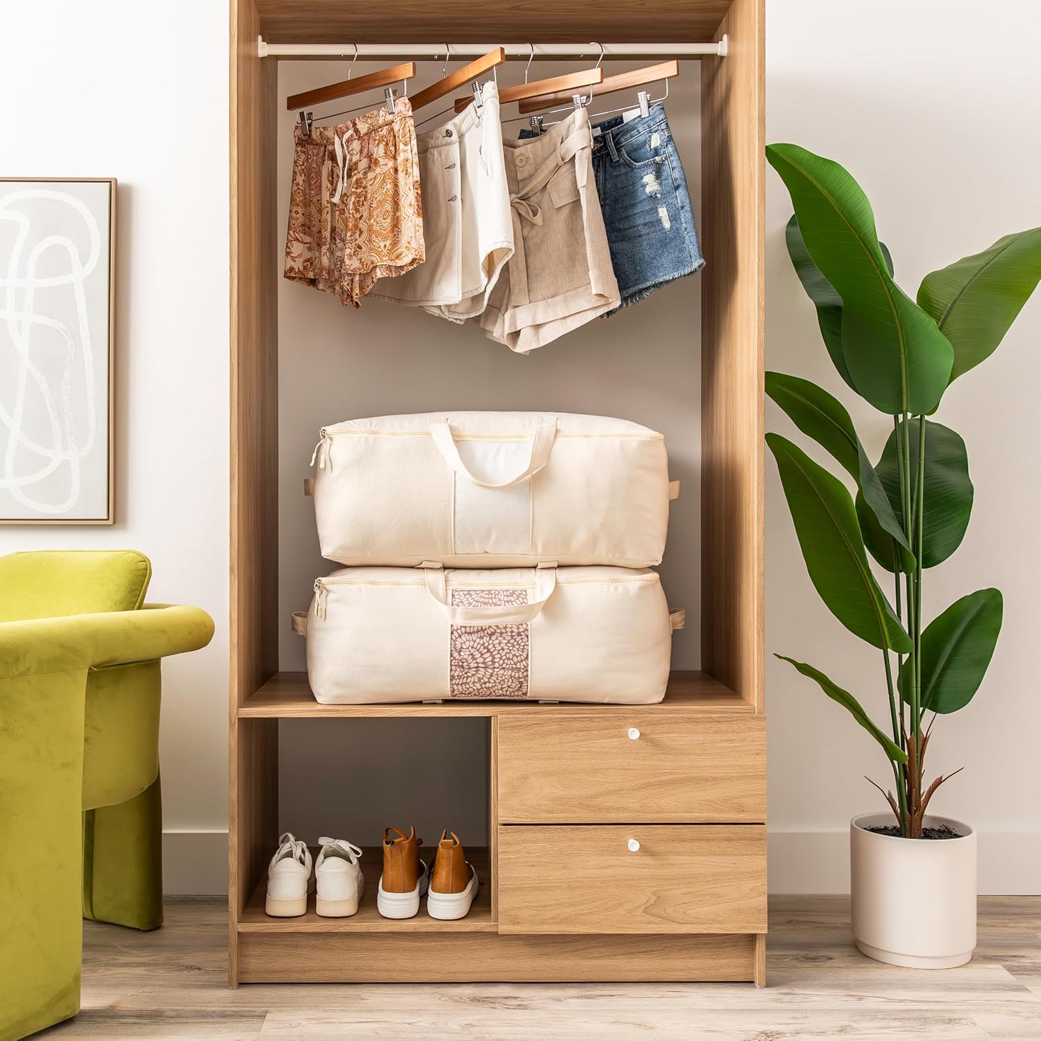 - COTTON CANVAS STORAGE WITH CLEAR WINDOW: You need to see which duvet storage or bed sheet storage is inside your case, right? So we added a scratch-resistant window to our beautiful beige canvas storage bag. This big full-sized viewing pane lets you see all your seasonal storage at a glance.