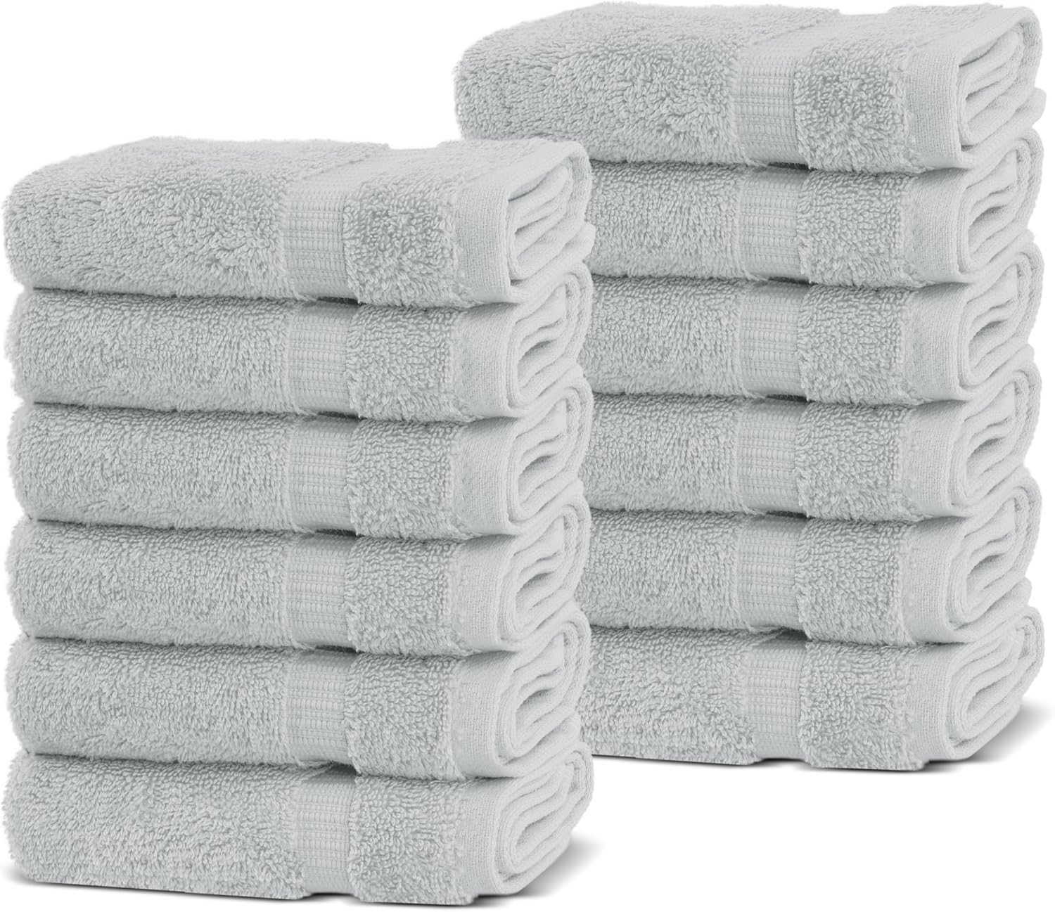 Chakir Turkish Linens | Hotel & Spa Quality 100% Cotton Premium Turkish Towels | Soft & Absorbent (12-Piece Washcloths, Silver Gray)