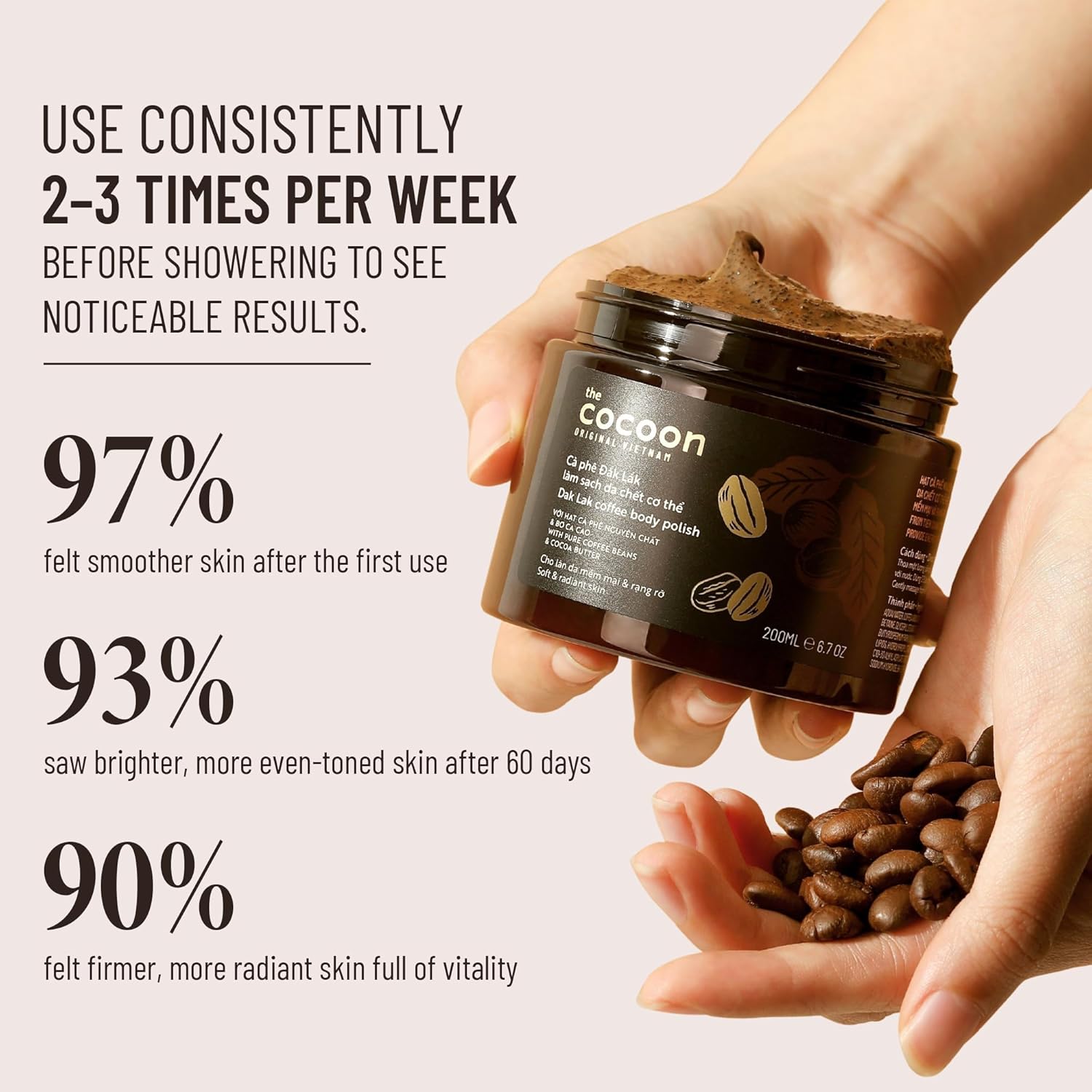 - Get glowing skin with the power of coffee: This face polish is made with premium Dak Lak coffee beans that gently exfoliate and glow your skin, leaving it soft and radiant.